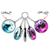 جاکلیدی دوطرفه مویچیرو توکیتو انیمه شیطان کشخندالو محصولی کاربردی و جدید است که در هر دو سمت محصول، تصویری متفاوت اما از یک موضوع چاپ شده و تفاوت اصلی آن با جاکلیدی های یک طرفه در همین است که هر دو سمت پشت و روی جاکلیدی، طرحی دیدنی و جذاب دارد. همچنین رینگ بکار برده شده برای دور طرح ها آبکاری کروم درجه یک و رنگ ثابت است و برخلاف سایر محصولات مشابه، از رنگ های متفرقه و یا سفید استفاده نشده، که این مهم، زیبایی محصول نهایی را چند برابر کرده است. جاکلیدی های دوطرفه مویچیرو توکیتو انیمه شیطان کشبا استفاده از روکش سلفون براق ضدخش تولید شده که خاصیت ضدخش بودن آن عمر مفید استفاده از جاکلیدی ها را افزایش میدهد. چاپ جاکلیدی ها با دستگاه های استاندارد و با بهترین سطح کیفیت صورت گرفته و طرح با شفافیتی مثال زدنی و با سلفون چسبی تولید شده است که باعث شده محصول نهایی بدون شکست نور دیده شود. همچنین بسته بندی جذاب و مینیمال جاکلیدی دوطرفه مویچیرو توکیتو انیمه شیطان کش، آنها را محصولی مناسب هدیه کرده است. زنجیر و حلقه بکار برده شده در جاکلیدی خندالو از نوع حلقه ضخیم و محکم بوده و حین استفاده آسیب نمی بیند.