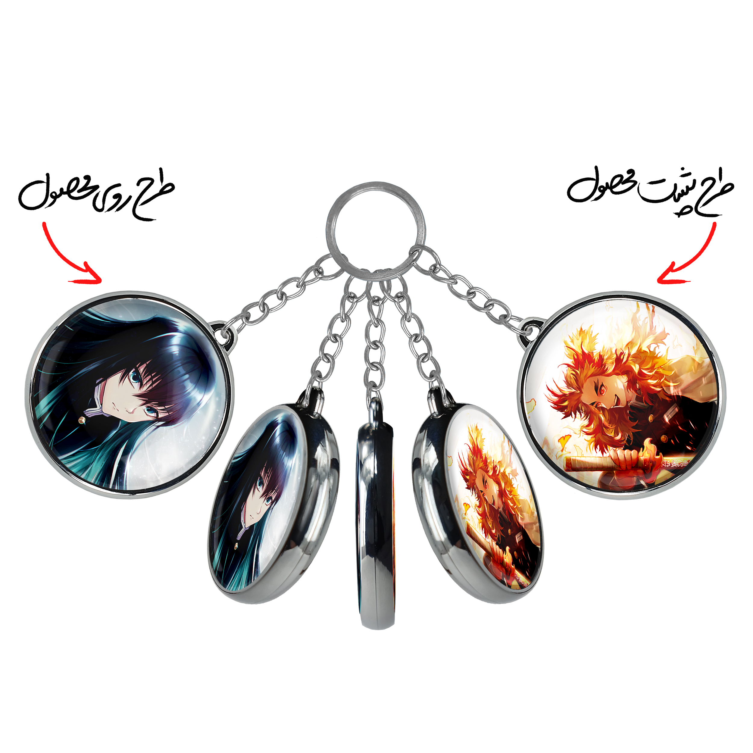 جاکلیدی دوطرفه مویچیرو توکیتو انیمه شیطان کشخندالو محصولی کاربردی و جدید است که در هر دو سمت محصول، تصویری متفاوت اما از یک موضوع چاپ شده و تفاوت اصلی آن با جاکلیدی های یک طرفه در همین است که هر دو سمت پشت و روی جاکلیدی، طرحی دیدنی و جذاب دارد.