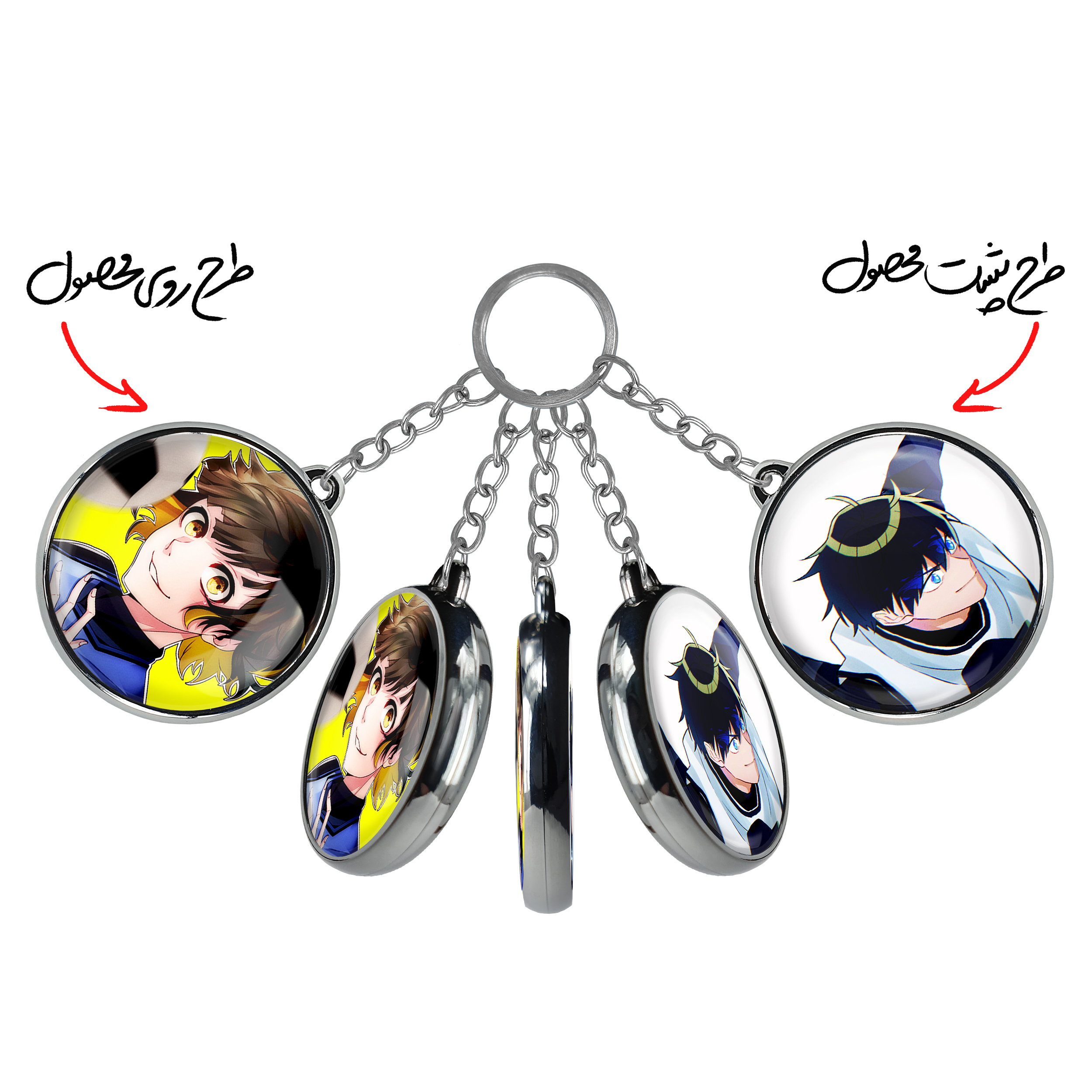 جاکلیدی دوطرفه مگورو انیمه بلو لاک Blue Lockخندالو محصولی کاربردی و جدید است که در هر دو سمت محصول، تصویری متفاوت اما از یک موضوع چاپ شده و تفاوت اصلی آن با جاکلیدی های یک طرفه در همین است که هر دو سمت پشت و روی جاکلیدی، طرحی دیدنی و جذاب دارد.