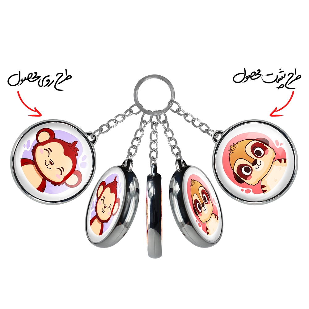 جاکلیدی دوطرفه میمون حیوانات بامزه خندالو محصولی کاربردی و جدید است که در هر دو سمت محصول، تصویری متفاوت اما از یک موضوع چاپ شده و تفاوت اصلی آن با جاکلیدی های یک طرفه در همین است که هر دو سمت پشت و روی جاکلیدی، طرحی دیدنی و جذاب دارد. همچنین رینگ بکار برده شده برای دور طرح ها آبکاری کروم درجه یک و رنگ ثابت است و برخلاف سایر محصولات مشابه، از رنگ های متفرقه و یا سفید استفاده نشده، که این مهم، زیبایی محصول نهایی را چند برابر کرده است. جاکلیدی های دوطرفه میمون حیوانات بامزه با استفاده از روکش سلفون براق ضدخش تولید شده که خاصیت ضدخش بودن آن عمر مفید استفاده از جاکلیدی ها را افزایش میدهد. چاپ جاکلیدی ها با دستگاه های استاندارد و با بهترین سطح کیفیت صورت گرفته و طرح با شفافیتی مثال زدنی و با سلفون چسبی تولید شده است که باعث شده محصول نهایی بدون شکست نور دیده شود. همچنین بسته بندی جذاب و مینیمال جاکلیدی دوطرفه میمون حیوانات بامزه، آنها را محصولی مناسب هدیه کرده است. زنجیر و حلقه بکار برده شده در جاکلیدی خندالو از نوع حلقه ضخیم و محکم بوده و حین استفاده آسیب نمی بیند.