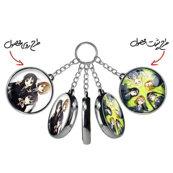 جاکلیدی دوطرفه میو، یویی و آزوسا انیمه كي اون خندالو محصولی کاربردی و جدید است که در هر دو سمت محصول، تصویری متفاوت اما از یک موضوع چاپ شده و تفاوت اصلی آن با جاکلیدی های یک طرفه در همین است که هر دو سمت پشت و روی جاکلیدی، طرحی دیدنی و جذاب دارد. همچنین رینگ بکار برده شده برای دور طرح ها آبکاری کروم درجه یک و رنگ ثابت است و برخلاف سایر محصولات مشابه، از رنگ های متفرقه و یا سفید استفاده نشده، که این مهم، زیبایی محصول نهایی را چند برابر کرده است. جاکلیدی های دوطرفه میو، یویی و آزوسا انیمه كي اون با استفاده از روکش سلفون براق ضدخش تولید شده که خاصیت ضدخش بودن آن عمر مفید استفاده از جاکلیدی ها را افزایش میدهد. چاپ جاکلیدی ها با دستگاه های استاندارد و با بهترین سطح کیفیت صورت گرفته و طرح با شفافیتی مثال زدنی و با سلفون چسبی تولید شده است که باعث شده محصول نهایی بدون شکست نور دیده شود. همچنین بسته بندی جذاب و مینیمال جاکلیدی دوطرفه میو، یویی و آزوسا انیمه كي اون، آنها را محصولی مناسب هدیه کرده است. زنجیر و حلقه بکار برده شده در جاکلیدی خندالو از نوع حلقه ضخیم و محکم بوده و حین استفاده آسیب نمی بیند.