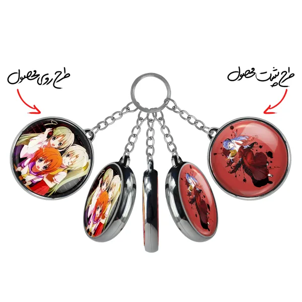 جاکلیدی دوطرفه میون و رنا و شیون انیمه هیگوراشی وقتی اشک می ریزد خندالو محصولی کاربردی و جدید است که در هر دو سمت محصول، تصویری متفاوت اما از یک موضوع چاپ شده و تفاوت اصلی آن با جاکلیدی های یک طرفه در همین است که هر دو سمت پشت و روی جاکلیدی، طرحی دیدنی و جذاب دارد. همچنین رینگ بکار برده شده برای دور طرح ها آبکاری کروم درجه یک و رنگ ثابت است و برخلاف سایر محصولات مشابه، از رنگ های متفرقه و یا سفید استفاده نشده، که این مهم، زیبایی محصول نهایی را چند برابر کرده است. جاکلیدی های دوطرفه میون و رنا و شیون انیمه هیگوراشی وقتی اشک می ریزد با استفاده از روکش سلفون براق ضدخش تولید شده که خاصیت ضدخش بودن آن عمر مفید استفاده از جاکلیدی ها را افزایش میدهد. چاپ جاکلیدی ها با دستگاه های استاندارد و با بهترین سطح کیفیت صورت گرفته و طرح با شفافیتی مثال زدنی و با سلفون چسبی تولید شده است که باعث شده محصول نهایی بدون شکست نور دیده شود. همچنین بسته بندی جذاب و مینیمال جاکلیدی دوطرفه میون و رنا و شیون انیمه هیگوراشی وقتی اشک می ریزد ، آنها را محصولی مناسب هدیه کرده است. زنجیر و حلقه بکار برده شده در جاکلیدی خندالو از نوع حلقه ضخیم و محکم بوده و حین استفاده آسیب نمی بیند.