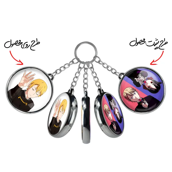 جاکلیدی دوطرفه میوکی ساما انیمه کاگویا ساما خندالو محصولی کاربردی و جدید است که در هر دو سمت محصول، تصویری متفاوت اما از یک موضوع چاپ شده و تفاوت اصلی آن با جاکلیدی های یک طرفه در همین است که هر دو سمت پشت و روی جاکلیدی، طرحی دیدنی و جذاب دارد.