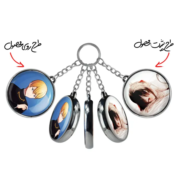 جاکلیدی دوطرفه میوکی ساما انیمه کاگویا ساما خندالو محصولی کاربردی و جدید است که در هر دو سمت محصول، تصویری متفاوت اما از یک موضوع چاپ شده و تفاوت اصلی آن با جاکلیدی های یک طرفه در همین است که هر دو سمت پشت و روی جاکلیدی، طرحی دیدنی و جذاب دارد.