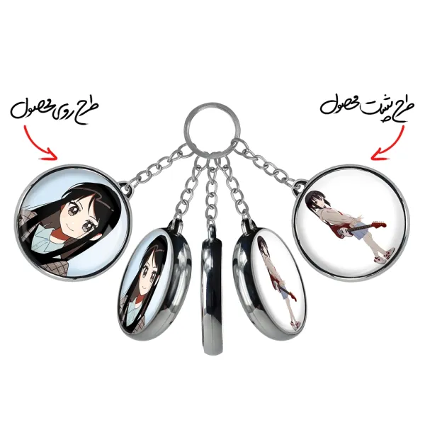 جاکلیدی دوطرفه میو انیمه كي اون خندالو محصولی کاربردی و جدید است که در هر دو سمت محصول، تصویری متفاوت اما از یک موضوع چاپ شده و تفاوت اصلی آن با جاکلیدی های یک طرفه در همین است که هر دو سمت پشت و روی جاکلیدی، طرحی دیدنی و جذاب دارد.