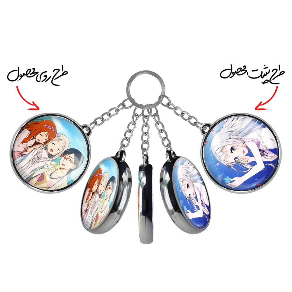 جاکلیدی دوطرفه میکو، آنجو و تسورومی انیمه آنوهانا خندالو محصولی کاربردی و جدید است که در هر دو سمت محصول، تصویری متفاوت اما از یک موضوع چاپ شده و تفاوت اصلی آن با جاکلیدی های یک طرفه در همین است که هر دو سمت پشت و روی جاکلیدی، طرحی دیدنی و جذاب دارد. همچنین رینگ بکار برده شده برای دور طرح ها آبکاری کروم درجه یک و رنگ ثابت است و برخلاف سایر محصولات مشابه، از رنگ های متفرقه و یا سفید استفاده نشده، که این مهم، زیبایی محصول نهایی را چند برابر کرده است. جاکلیدی های دوطرفه میکو، آنجو و تسورومی انیمه آنوهانا با استفاده از روکش سلفون براق ضدخش تولید شده که خاصیت ضدخش بودن آن عمر مفید استفاده از جاکلیدی ها را افزایش میدهد. چاپ جاکلیدی ها با دستگاه های استاندارد و با بهترین سطح کیفیت صورت گرفته و طرح با شفافیتی مثال زدنی و با سلفون چسبی تولید شده است که باعث شده محصول نهایی بدون شکست نور دیده شود. همچنین بسته بندی جذاب و مینیمال جاکلیدی دوطرفه میکو، آنجو و تسورومی انیمه آنوهانا، آنها را محصولی مناسب هدیه کرده است. زنجیر و حلقه بکار برده شده در جاکلیدی خندالو از نوع حلقه ضخیم و محکم بوده و حین استفاده آسیب نمی بیند.