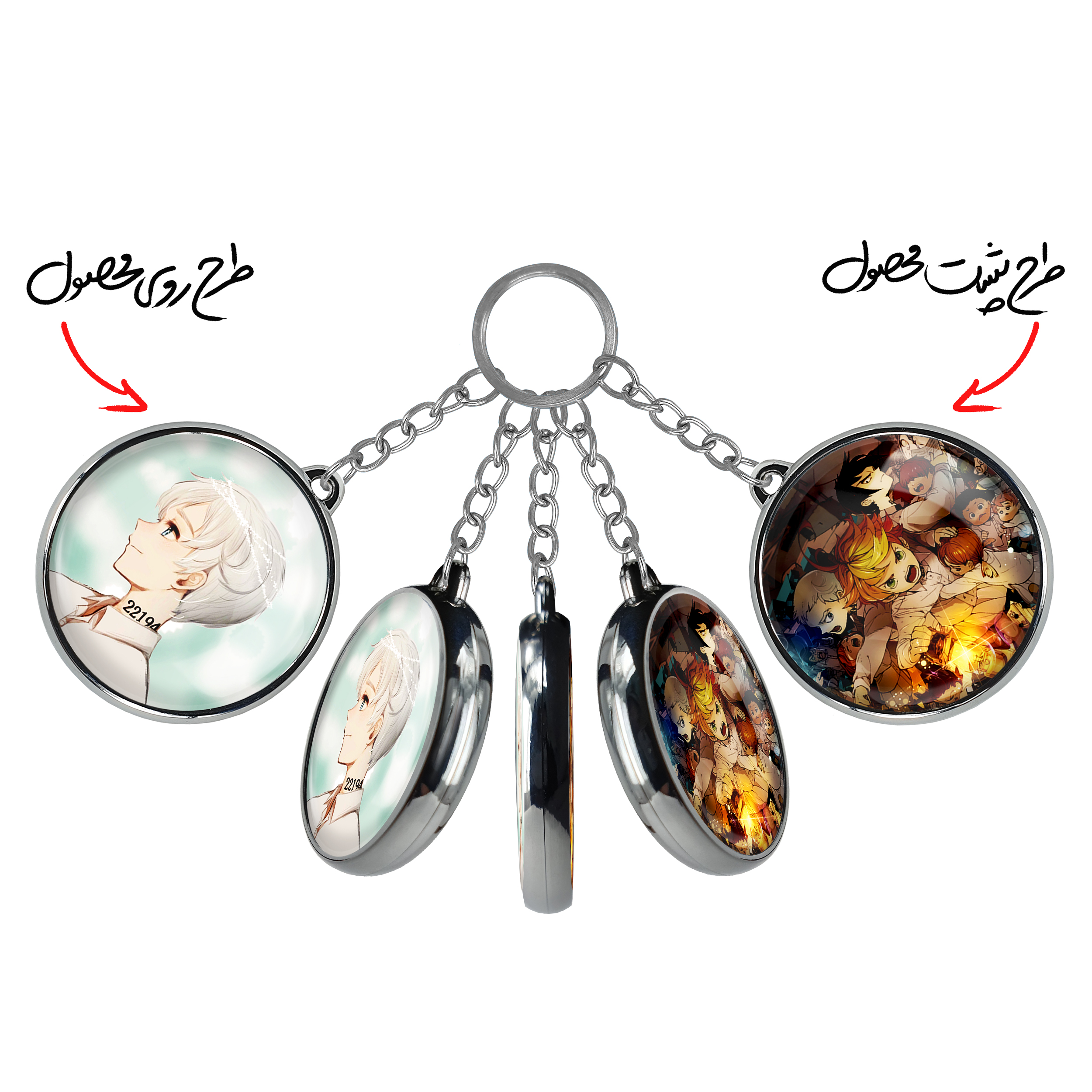 جاکلیدی دوطرفه نورمن انیمه ناکجاآباد موعود خندالو محصولی کاربردی و جدید است که در هر دو سمت محصول، تصویری متفاوت اما از یک موضوع چاپ شده و تفاوت اصلی آن با جاکلیدی های یک طرفه در همین است که هر دو سمت پشت و روی جاکلیدی، طرحی دیدنی و جذاب دارد.