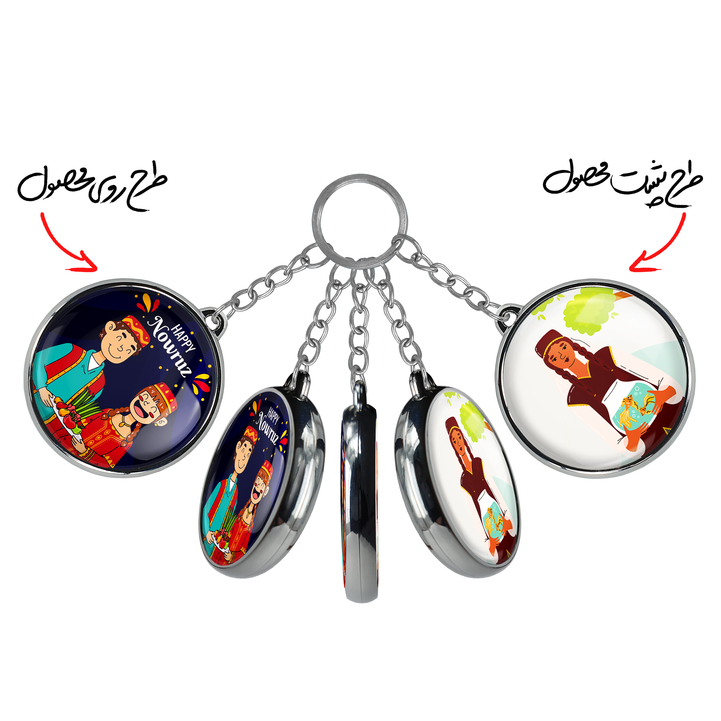 جاکلیدی دوطرفه نوروزخندالو محصولی کاربردی و جدید است که در هر دو سمت محصول، تصویری متفاوت اما از یک موضوع چاپ شده و تفاوت اصلی آن با جاکلیدی های یک طرفه در همین است که هر دو سمت پشت و روی جاکلیدی، طرحی دیدنی و جذاب دارد.
