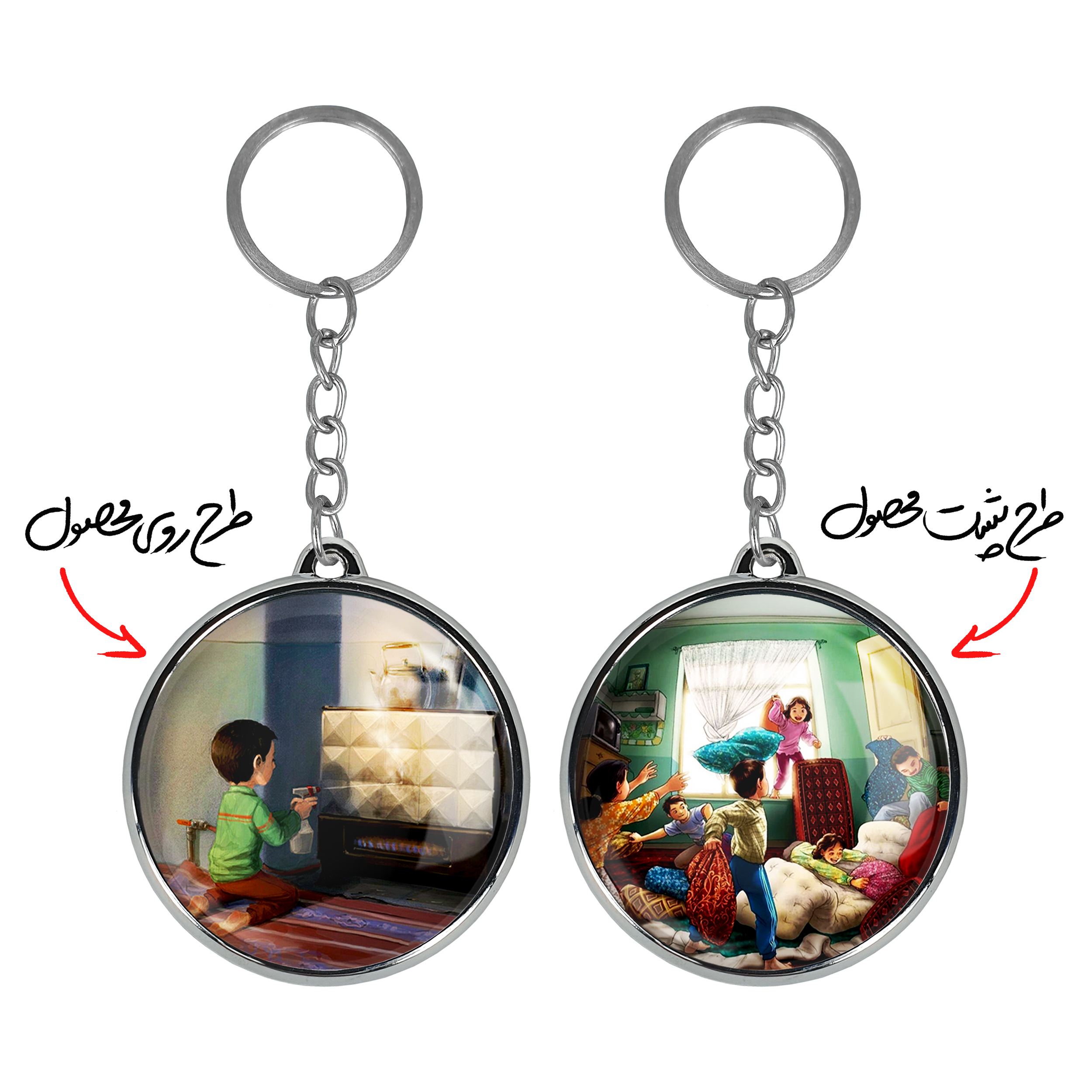 جاکلیدی دوطرفه نوستالژیخندالو محصولی کاربردی و جدید است که در هر دو سمت محصول، تصویری متفاوت اما از یک موضوع چاپ شده و تفاوت اصلی آن با جاکلیدی های یک طرفه در همین است که هر دو سمت پشت و روی جاکلیدی، طرحی دیدنی و جذاب دارد. همچنین رینگ بکار برده شده برای دور طرح ها آبکاری کروم درجه یک و رنگ ثابت است و برخلاف سایر محصولات مشابه، از رنگ های متفرقه و یا سفید استفاده نشده، که این مهم، زیبایی محصول نهایی را چند برابر کرده است. جاکلیدی های دوطرفه نوستالژیبا استفاده از روکش سلفون براق ضدخش تولید شده که خاصیت ضدخش بودن آن عمر مفید استفاده از جاکلیدی ها را افزایش میدهد. چاپ جاکلیدی ها با دستگاه های استاندارد و با بهترین سطح کیفیت صورت گرفته و طرح با شفافیتی مثال زدنی و با سلفون چسبی تولید شده است که باعث شده محصول نهایی بدون شکست نور دیده شود. همچنین بسته بندی جذاب و مینیمال جاکلیدی دوطرفه نوستالژی، آنها را محصولی مناسب هدیه کرده است. زنجیر و حلقه بکار برده شده در جاکلیدی خندالو از نوع حلقه ضخیم و محکم بوده و حین استفاده آسیب نمی بیند.