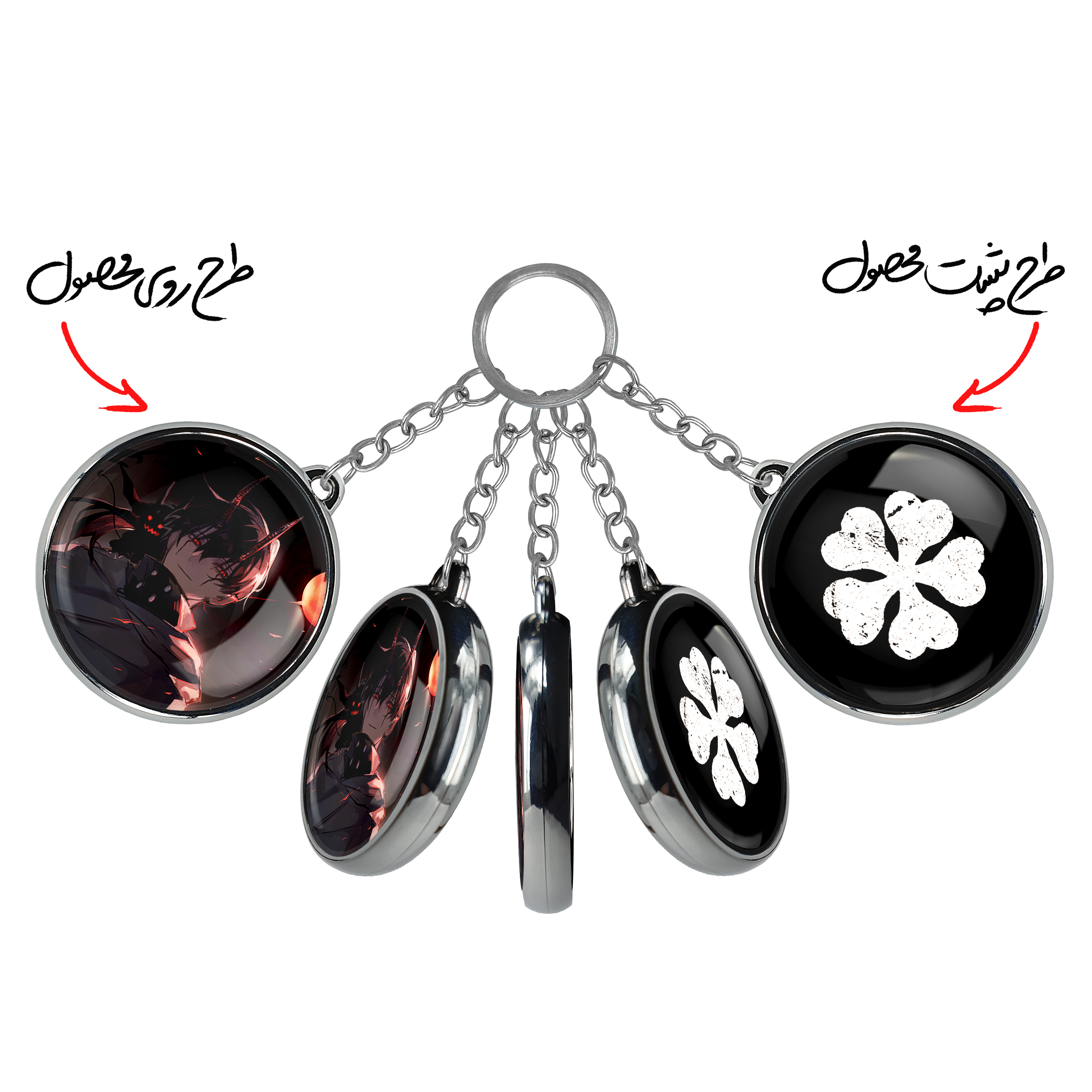جاکلیدی دوطرفه نچت فاست انیمه بلک کلاور Black Clover خندالو محصولی کاربردی و جدید است که در هر دو سمت محصول، تصویری متفاوت اما از یک موضوع چاپ شده و تفاوت اصلی آن با جاکلیدی های یک طرفه در همین است که هر دو سمت پشت و روی جاکلیدی، طرحی دیدنی و جذاب دارد. همچنین رینگ بکار برده شده برای دور طرح ها آبکاری کروم درجه یک و رنگ ثابت است و برخلاف سایر محصولات مشابه، از رنگ های متفرقه و یا سفید استفاده نشده، که این مهم، زیبایی محصول نهایی را چند برابر کرده است. جاکلیدی های دوطرفه نچت فاست انیمه بلک کلاور Black Clover با استفاده از روکش سلفون براق ضدخش تولید شده که خاصیت ضدخش بودن آن عمر مفید استفاده از جاکلیدی ها را افزایش میدهد. چاپ جاکلیدی ها با دستگاه های استاندارد و با بهترین سطح کیفیت صورت گرفته و طرح با شفافیتی مثال زدنی و با سلفون چسبی تولید شده است که باعث شده محصول نهایی بدون شکست نور دیده شود. همچنین بسته بندی جذاب و مینیمال جاکلیدی دوطرفه نچت فاست انیمه بلک کلاور Black Clover ، آنها را محصولی مناسب هدیه کرده است. زنجیر و حلقه بکار برده شده در جاکلیدی خندالو از نوع حلقه ضخیم و محکم بوده و حین استفاده آسیب نمی بیند.