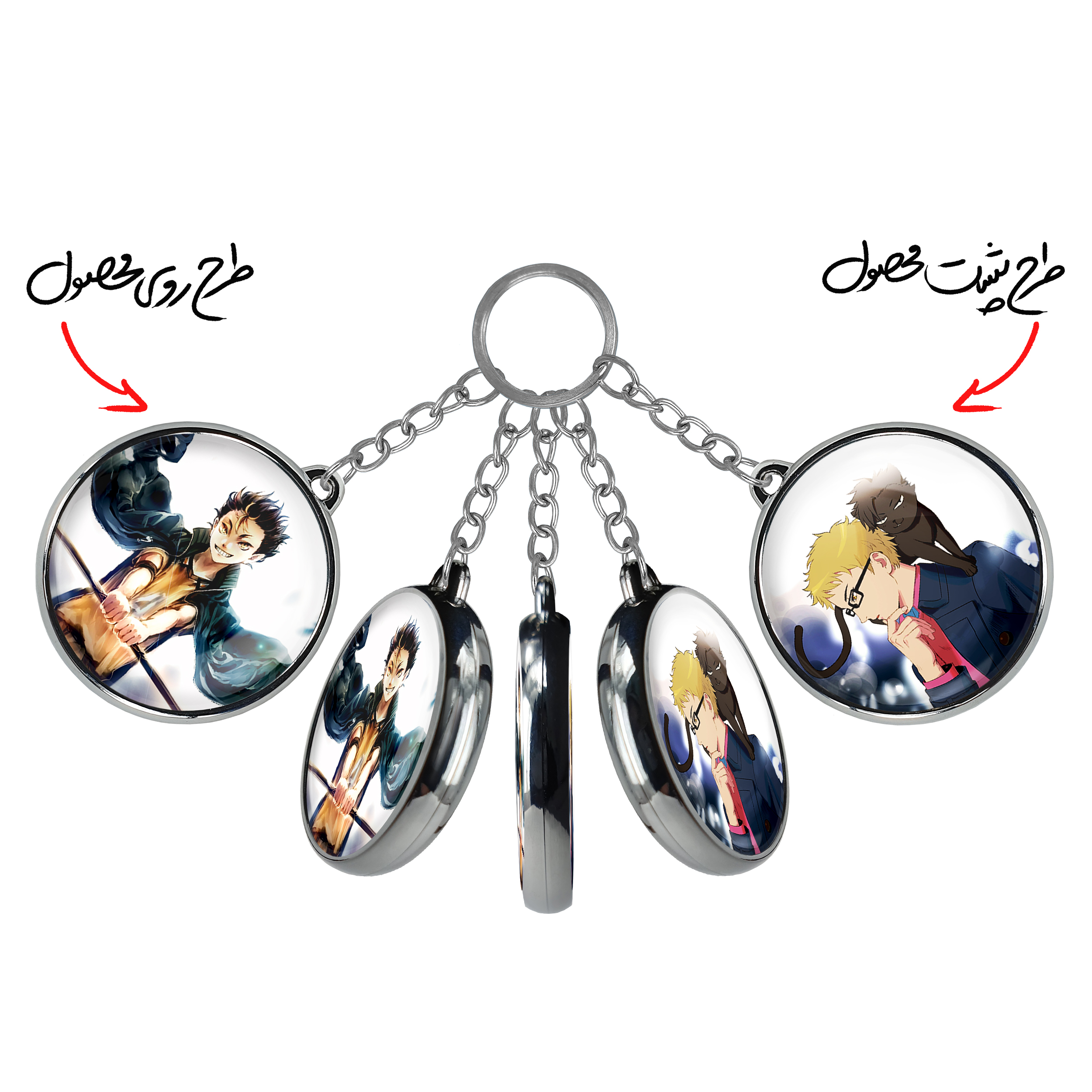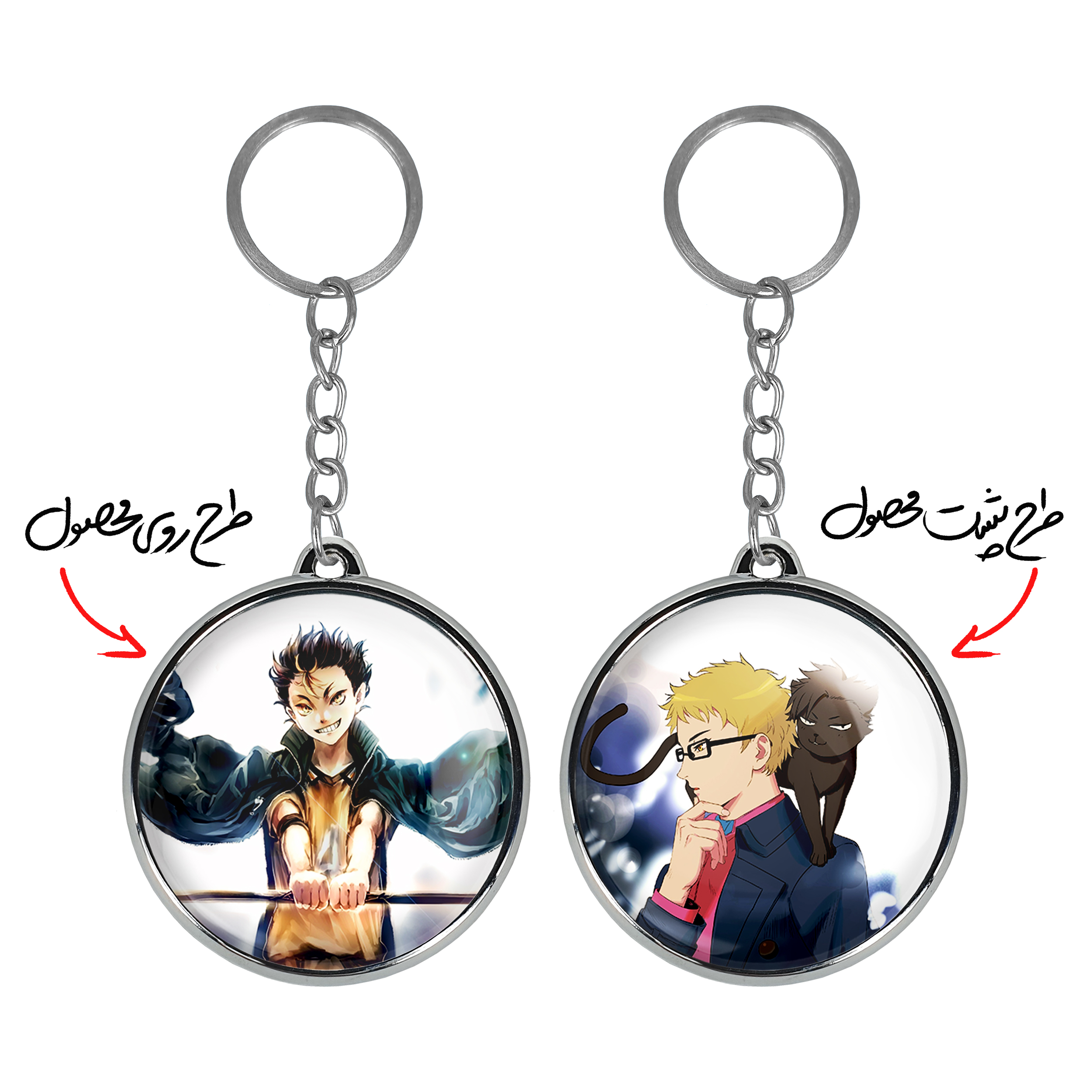 جاکلیدی دوطرفه نیشینویا یو انیمه آبشار سرنوشت هایکیو کاگیاما خندالو محصولی کاربردی و جدید است که در هر دو سمت محصول، تصویری متفاوت اما از یک موضوع چاپ شده و تفاوت اصلی آن با جاکلیدی های یک طرفه در همین است که هر دو سمت پشت و روی جاکلیدی، طرحی دیدنی و جذاب دارد.