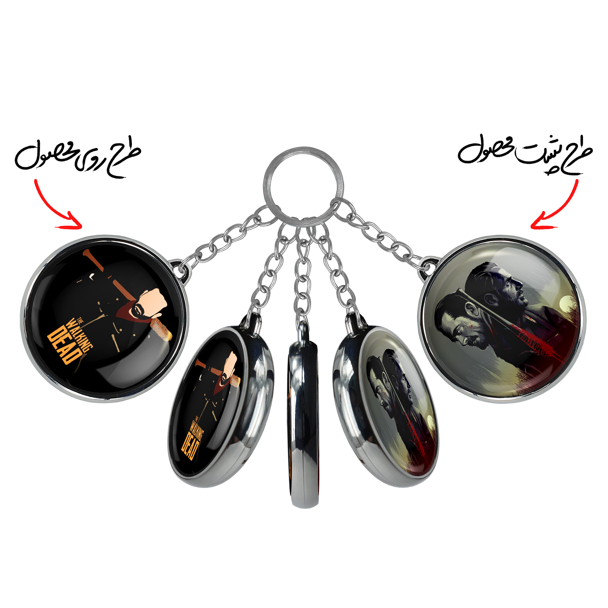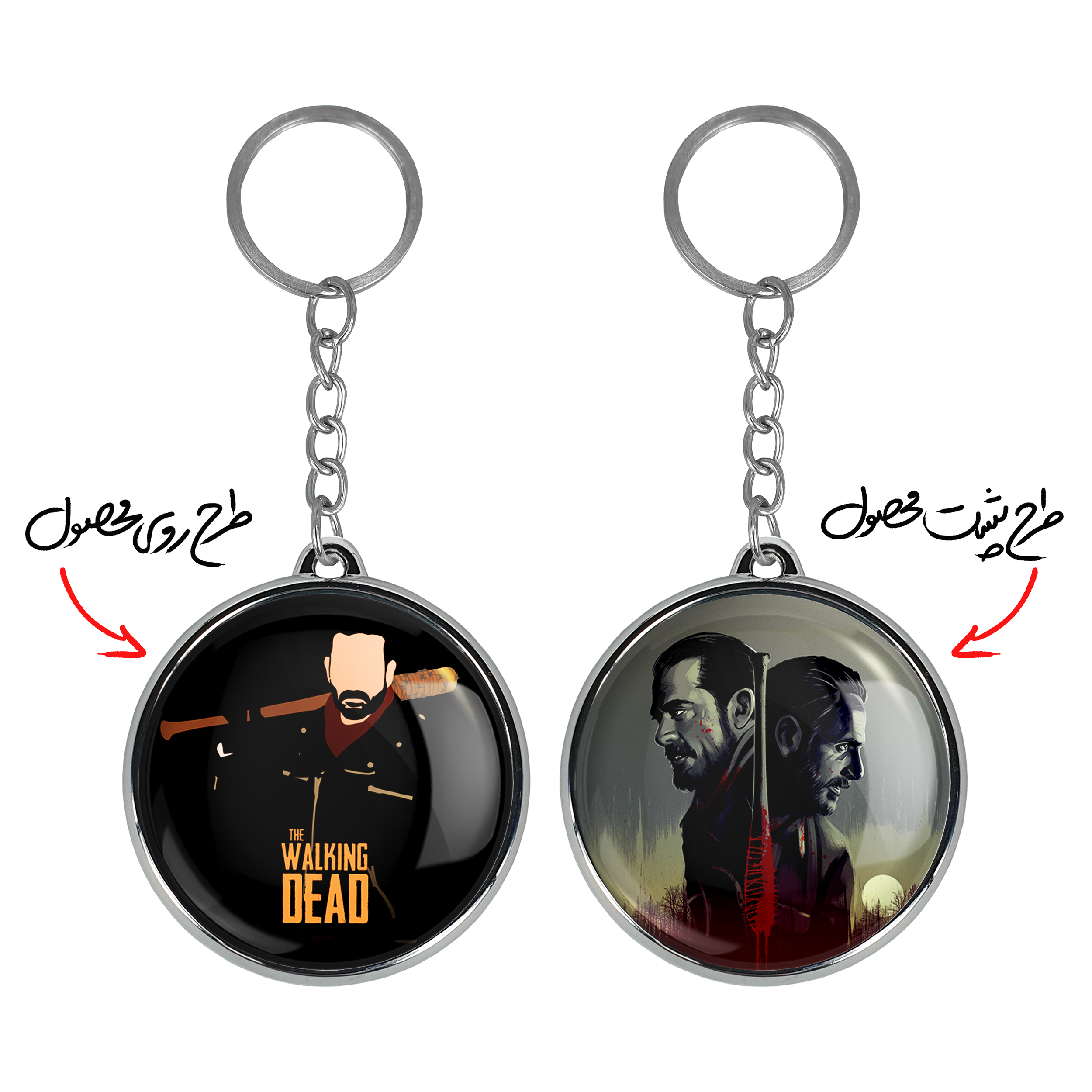 جاکلیدی دوطرفه نیگان سریال مردگان متحرک The Walking Dead خندالو محصولی کاربردی و جدید است که در هر دو سمت محصول، تصویری متفاوت اما از یک موضوع چاپ شده و تفاوت اصلی آن با جاکلیدی های یک طرفه در همین است که هر دو سمت پشت و روی جاکلیدی، طرحی دیدنی و جذاب دارد.