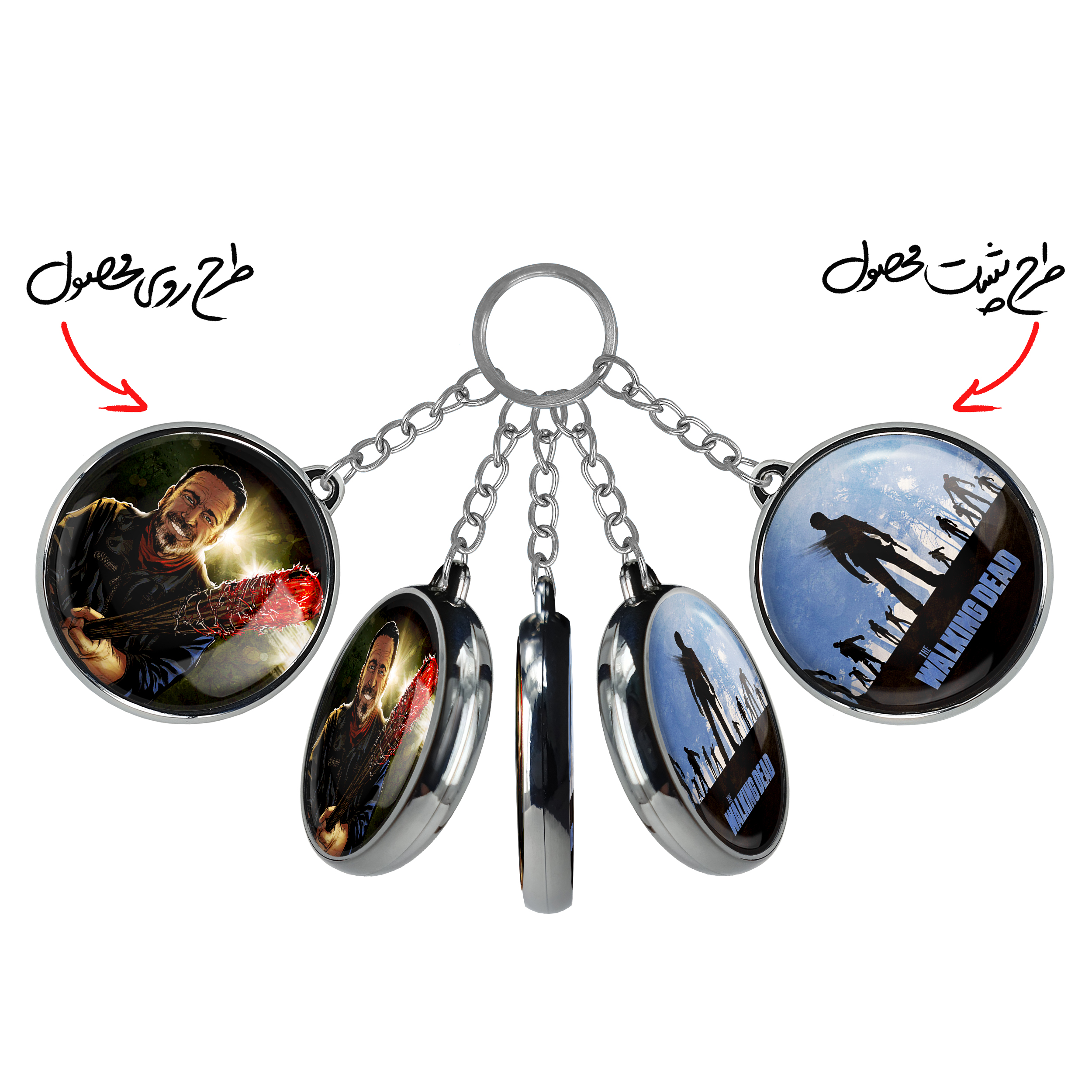 جاکلیدی دوطرفه نیگان سریال مردگان متحرک The Walking Dead خندالو محصولی کاربردی و جدید است که در هر دو سمت محصول، تصویری متفاوت اما از یک موضوع چاپ شده و تفاوت اصلی آن با جاکلیدی های یک طرفه در همین است که هر دو سمت پشت و روی جاکلیدی، طرحی دیدنی و جذاب دارد. همچنین رینگ بکار برده شده برای دور طرح ها آبکاری کروم درجه یک و رنگ ثابت است و برخلاف سایر محصولات مشابه، از رنگ های متفرقه و یا سفید استفاده نشده، که این مهم، زیبایی محصول نهایی را چند برابر کرده است. جاکلیدی های دوطرفه نیگان سریال مردگان متحرک The Walking Dead با استفاده از روکش سلفون براق ضدخش تولید شده که خاصیت ضدخش بودن آن عمر مفید استفاده از جاکلیدی ها را افزایش میدهد. چاپ جاکلیدی ها با دستگاه های استاندارد و با بهترین سطح کیفیت صورت گرفته و طرح با شفافیتی مثال زدنی و با سلفون چسبی تولید شده است که باعث شده محصول نهایی بدون شکست نور دیده شود. همچنین بسته بندی جذاب و مینیمال جاکلیدی دوطرفه نیگان سریال مردگان متحرک The Walking Dead ، آنها را محصولی مناسب هدیه کرده است. زنجیر و حلقه بکار برده شده در جاکلیدی خندالو از نوع حلقه ضخیم و محکم بوده و حین استفاده آسیب نمی بیند.