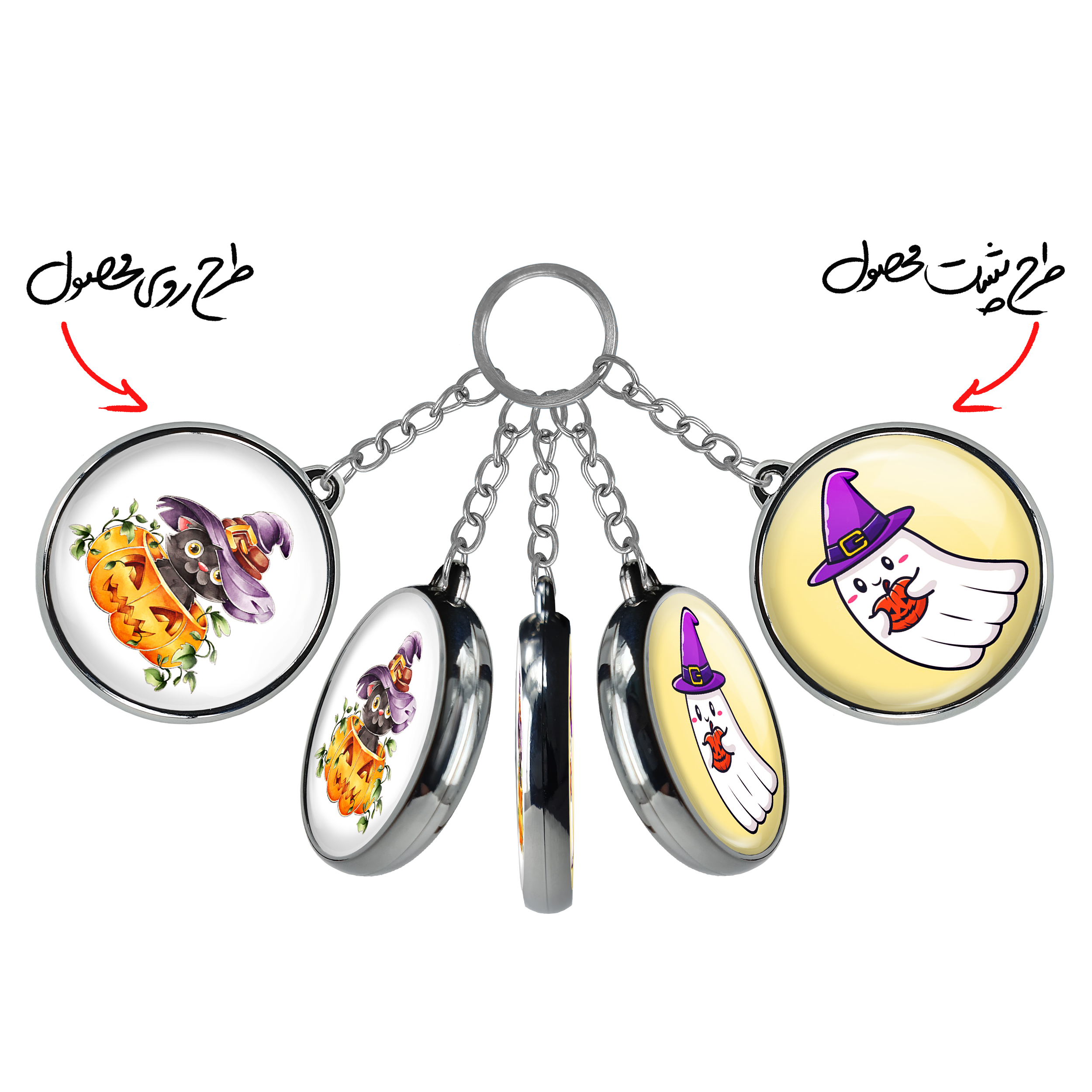 جاکلیدی دوطرفه هالووینخندالو محصولی کاربردی و جدید است که در هر دو سمت محصول، تصویری متفاوت اما از یک موضوع چاپ شده و تفاوت اصلی آن با جاکلیدی های یک طرفه در همین است که هر دو سمت پشت و روی جاکلیدی، طرحی دیدنی و جذاب دارد.
