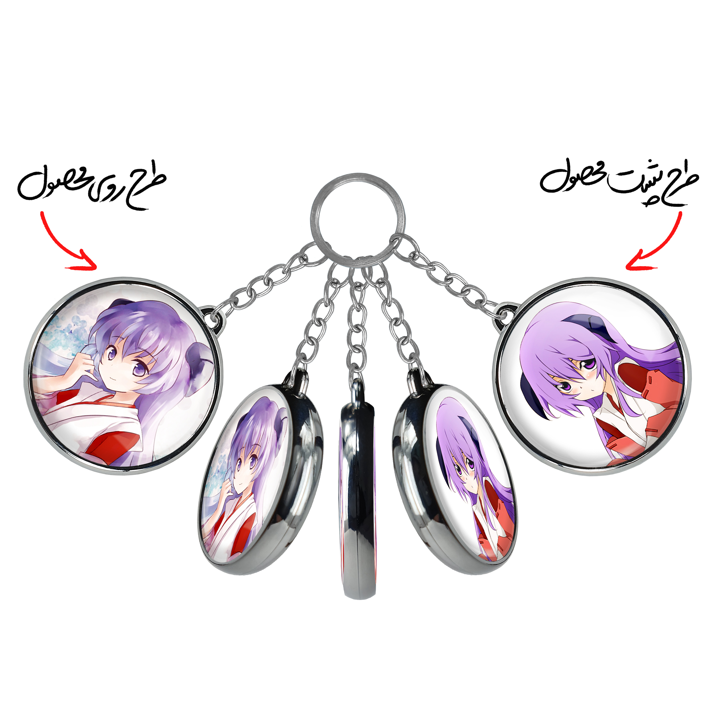 جاکلیدی دوطرفه هانیو انیمه هیگوراشی وقتی اشک می ریزد خندالو محصولی کاربردی و جدید است که در هر دو سمت محصول، تصویری متفاوت اما از یک موضوع چاپ شده و تفاوت اصلی آن با جاکلیدی های یک طرفه در همین است که هر دو سمت پشت و روی جاکلیدی، طرحی دیدنی و جذاب دارد. همچنین رینگ بکار برده شده برای دور طرح ها آبکاری کروم درجه یک و رنگ ثابت است و برخلاف سایر محصولات مشابه، از رنگ های متفرقه و یا سفید استفاده نشده، که این مهم، زیبایی محصول نهایی را چند برابر کرده است. جاکلیدی های دوطرفه هانیو انیمه هیگوراشی وقتی اشک می ریزد با استفاده از روکش سلفون براق ضدخش تولید شده که خاصیت ضدخش بودن آن عمر مفید استفاده از جاکلیدی ها را افزایش میدهد. چاپ جاکلیدی ها با دستگاه های استاندارد و با بهترین سطح کیفیت صورت گرفته و طرح با شفافیتی مثال زدنی و با سلفون چسبی تولید شده است که باعث شده محصول نهایی بدون شکست نور دیده شود. همچنین بسته بندی جذاب و مینیمال جاکلیدی دوطرفه هانیو انیمه هیگوراشی وقتی اشک می ریزد ، آنها را محصولی مناسب هدیه کرده است. زنجیر و حلقه بکار برده شده در جاکلیدی خندالو از نوع حلقه ضخیم و محکم بوده و حین استفاده آسیب نمی بیند.