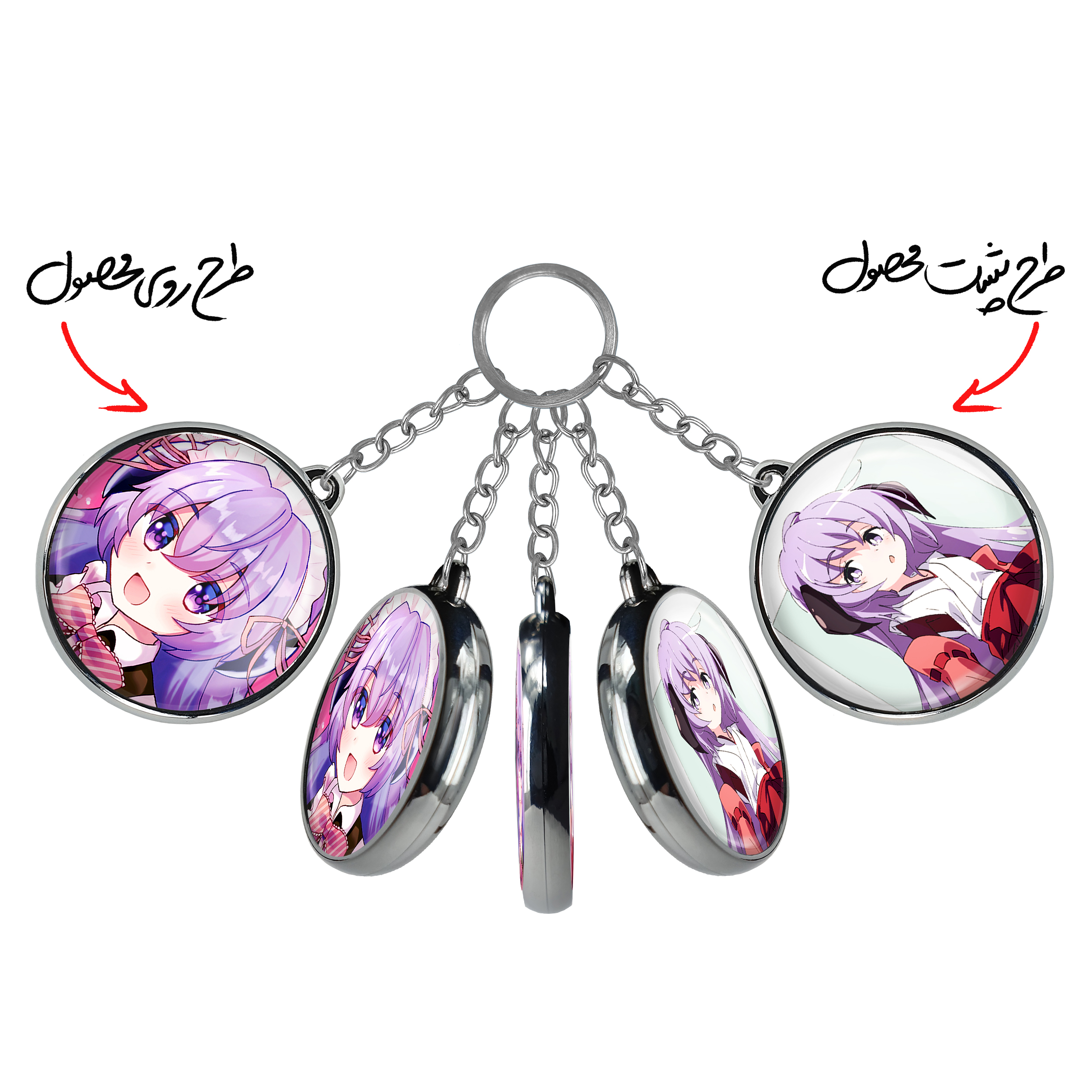 جاکلیدی دوطرفه هانیو انیمه هیگوراشی وقتی اشک می ریزد خندالو محصولی کاربردی و جدید است که در هر دو سمت محصول، تصویری متفاوت اما از یک موضوع چاپ شده و تفاوت اصلی آن با جاکلیدی های یک طرفه در همین است که هر دو سمت پشت و روی جاکلیدی، طرحی دیدنی و جذاب دارد. همچنین رینگ بکار برده شده برای دور طرح ها آبکاری کروم درجه یک و رنگ ثابت است و برخلاف سایر محصولات مشابه، از رنگ های متفرقه و یا سفید استفاده نشده، که این مهم، زیبایی محصول نهایی را چند برابر کرده است. جاکلیدی های دوطرفه هانیو انیمه هیگوراشی وقتی اشک می ریزد با استفاده از روکش سلفون براق ضدخش تولید شده که خاصیت ضدخش بودن آن عمر مفید استفاده از جاکلیدی ها را افزایش میدهد. چاپ جاکلیدی ها با دستگاه های استاندارد و با بهترین سطح کیفیت صورت گرفته و طرح با شفافیتی مثال زدنی و با سلفون چسبی تولید شده است که باعث شده محصول نهایی بدون شکست نور دیده شود. همچنین بسته بندی جذاب و مینیمال جاکلیدی دوطرفه هانیو انیمه هیگوراشی وقتی اشک می ریزد ، آنها را محصولی مناسب هدیه کرده است. زنجیر و حلقه بکار برده شده در جاکلیدی خندالو از نوع حلقه ضخیم و محکم بوده و حین استفاده آسیب نمی بیند.