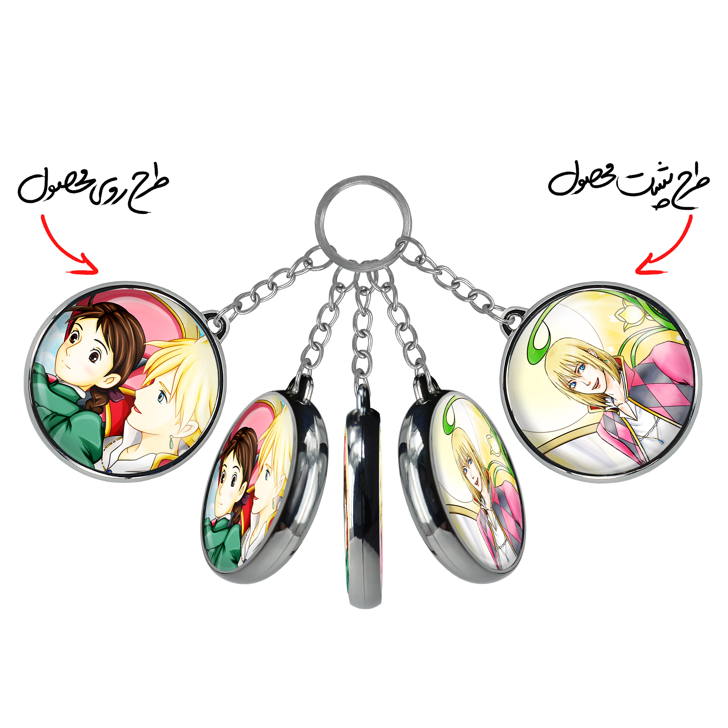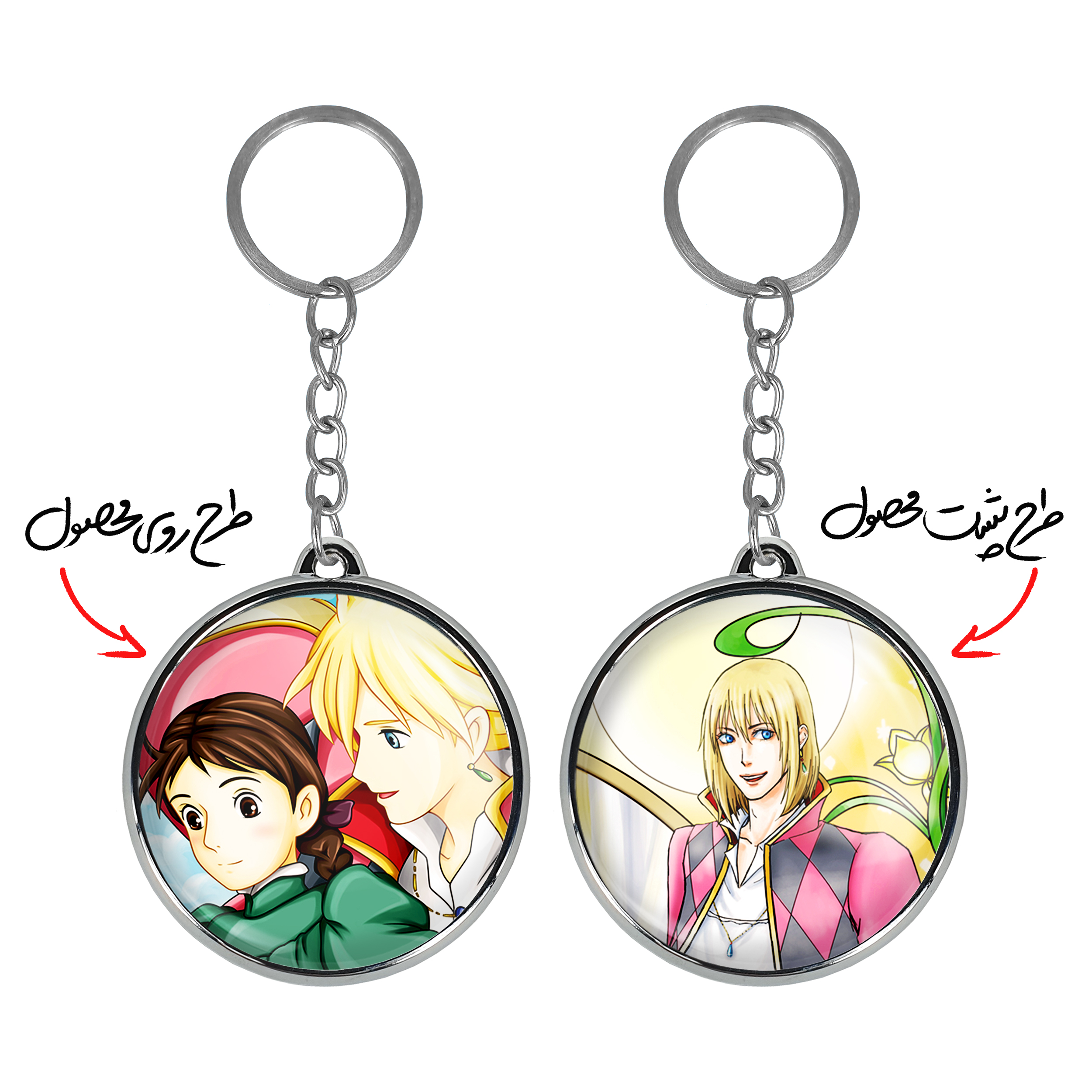 جاکلیدی دوطرفه هاول و سوفی انیمه قلعه متحرک هاول خندالو محصولی کاربردی و جدید است که در هر دو سمت محصول، تصویری متفاوت اما از یک موضوع چاپ شده و تفاوت اصلی آن با جاکلیدی های یک طرفه در همین است که هر دو سمت پشت و روی جاکلیدی، طرحی دیدنی و جذاب دارد.