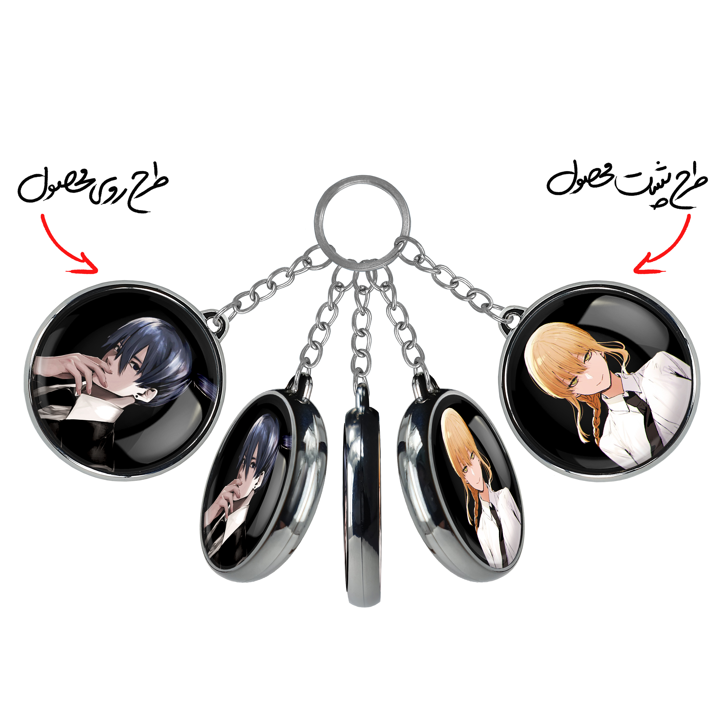 جاکلیدی دوطرفه هایاکاوا انیمه مرد اره ای Chainsaw Man خندالو محصولی کاربردی و جدید است که در هر دو سمت محصول، تصویری متفاوت اما از یک موضوع چاپ شده و تفاوت اصلی آن با جاکلیدی های یک طرفه در همین است که هر دو سمت پشت و روی جاکلیدی، طرحی دیدنی و جذاب دارد.
