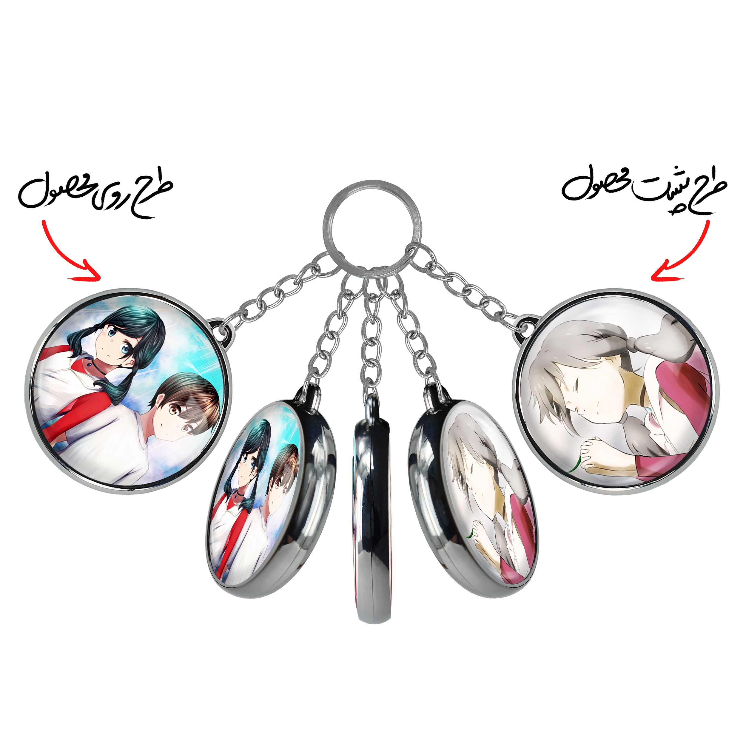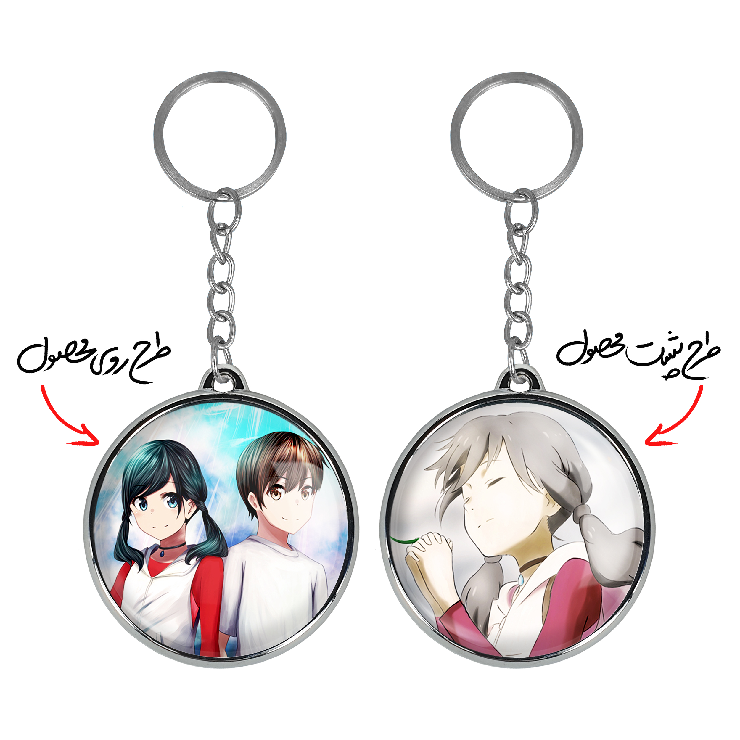 جاکلیدی دوطرفه هداکا و هینا انیمه تغییر آب و هوا با تو خندالو محصولی کاربردی و جدید است که در هر دو سمت محصول، تصویری متفاوت اما از یک موضوع چاپ شده و تفاوت اصلی آن با جاکلیدی های یک طرفه در همین است که هر دو سمت پشت و روی جاکلیدی، طرحی دیدنی و جذاب دارد. همچنین رینگ بکار برده شده برای دور طرح ها آبکاری کروم درجه یک و رنگ ثابت است و برخلاف سایر محصولات مشابه، از رنگ های متفرقه و یا سفید استفاده نشده، که این مهم، زیبایی محصول نهایی را چند برابر کرده است. جاکلیدی های دوطرفه هداکا و هینا انیمه تغییر آب و هوا با تو با استفاده از روکش سلفون براق ضدخش تولید شده که خاصیت ضدخش بودن آن عمر مفید استفاده از جاکلیدی ها را افزایش میدهد. چاپ جاکلیدی ها با دستگاه های استاندارد و با بهترین سطح کیفیت صورت گرفته و طرح با شفافیتی مثال زدنی و با سلفون چسبی تولید شده است که باعث شده محصول نهایی بدون شکست نور دیده شود. همچنین بسته بندی جذاب و مینیمال جاکلیدی دوطرفه هداکا و هینا انیمه تغییر آب و هوا با تو ، آنها را محصولی مناسب هدیه کرده است. زنجیر و حلقه بکار برده شده در جاکلیدی خندالو از نوع حلقه ضخیم و محکم بوده و حین استفاده آسیب نمی بیند.