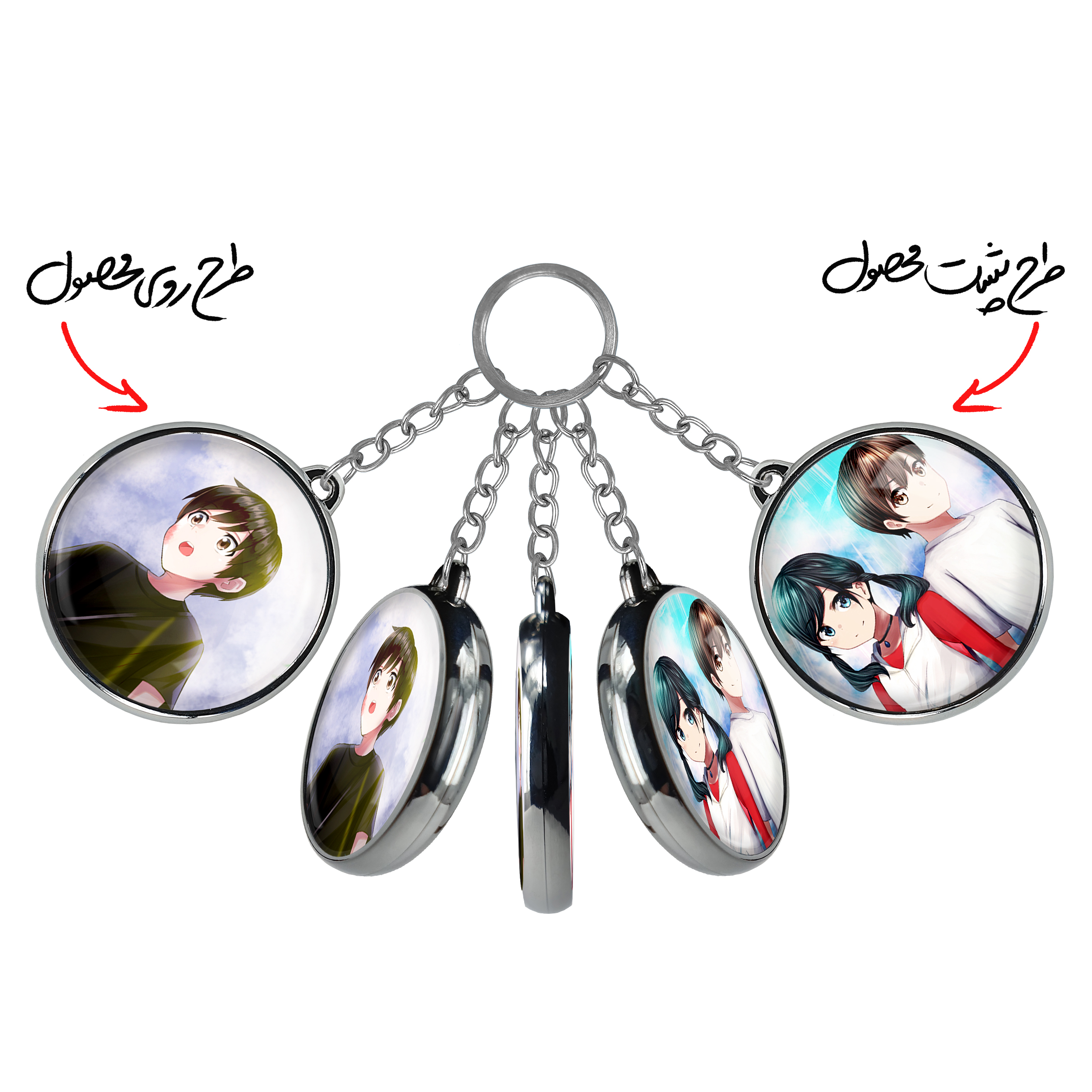 جاکلیدی دوطرفه هداکا و هینا انیمه تغییر آب و هوا با تو خندالو محصولی کاربردی و جدید است که در هر دو سمت محصول، تصویری متفاوت اما از یک موضوع چاپ شده و تفاوت اصلی آن با جاکلیدی های یک طرفه در همین است که هر دو سمت پشت و روی جاکلیدی، طرحی دیدنی و جذاب دارد. همچنین رینگ بکار برده شده برای دور طرح ها آبکاری کروم درجه یک و رنگ ثابت است و برخلاف سایر محصولات مشابه، از رنگ های متفرقه و یا سفید استفاده نشده، که این مهم، زیبایی محصول نهایی را چند برابر کرده است. جاکلیدی های دوطرفه هداکا و هینا انیمه تغییر آب و هوا با تو با استفاده از روکش سلفون براق ضدخش تولید شده که خاصیت ضدخش بودن آن عمر مفید استفاده از جاکلیدی ها را افزایش میدهد. چاپ جاکلیدی ها با دستگاه های استاندارد و با بهترین سطح کیفیت صورت گرفته و طرح با شفافیتی مثال زدنی و با سلفون چسبی تولید شده است که باعث شده محصول نهایی بدون شکست نور دیده شود. همچنین بسته بندی جذاب و مینیمال جاکلیدی دوطرفه هداکا و هینا انیمه تغییر آب و هوا با تو ، آنها را محصولی مناسب هدیه کرده است. زنجیر و حلقه بکار برده شده در جاکلیدی خندالو از نوع حلقه ضخیم و محکم بوده و حین استفاده آسیب نمی بیند.