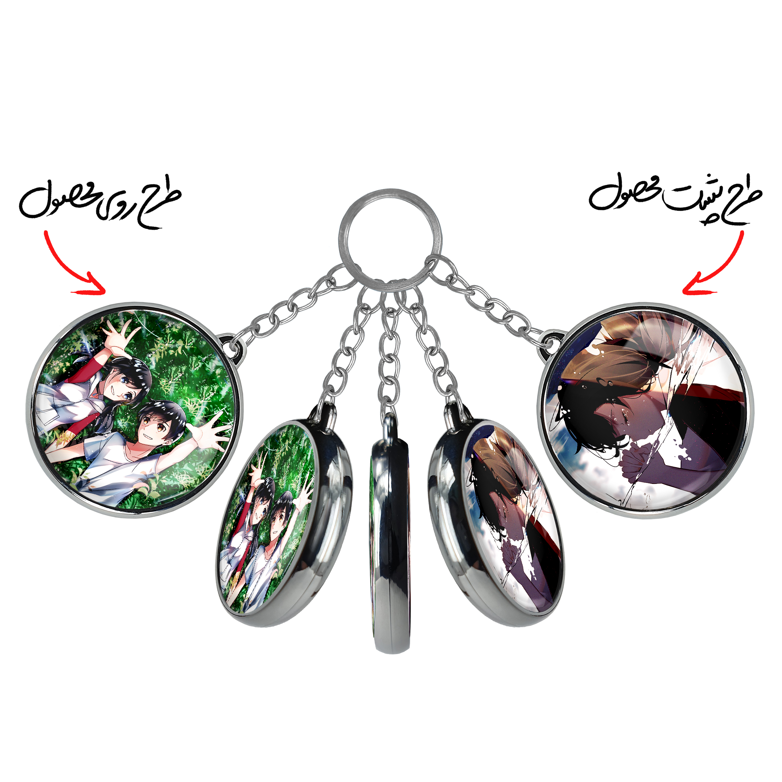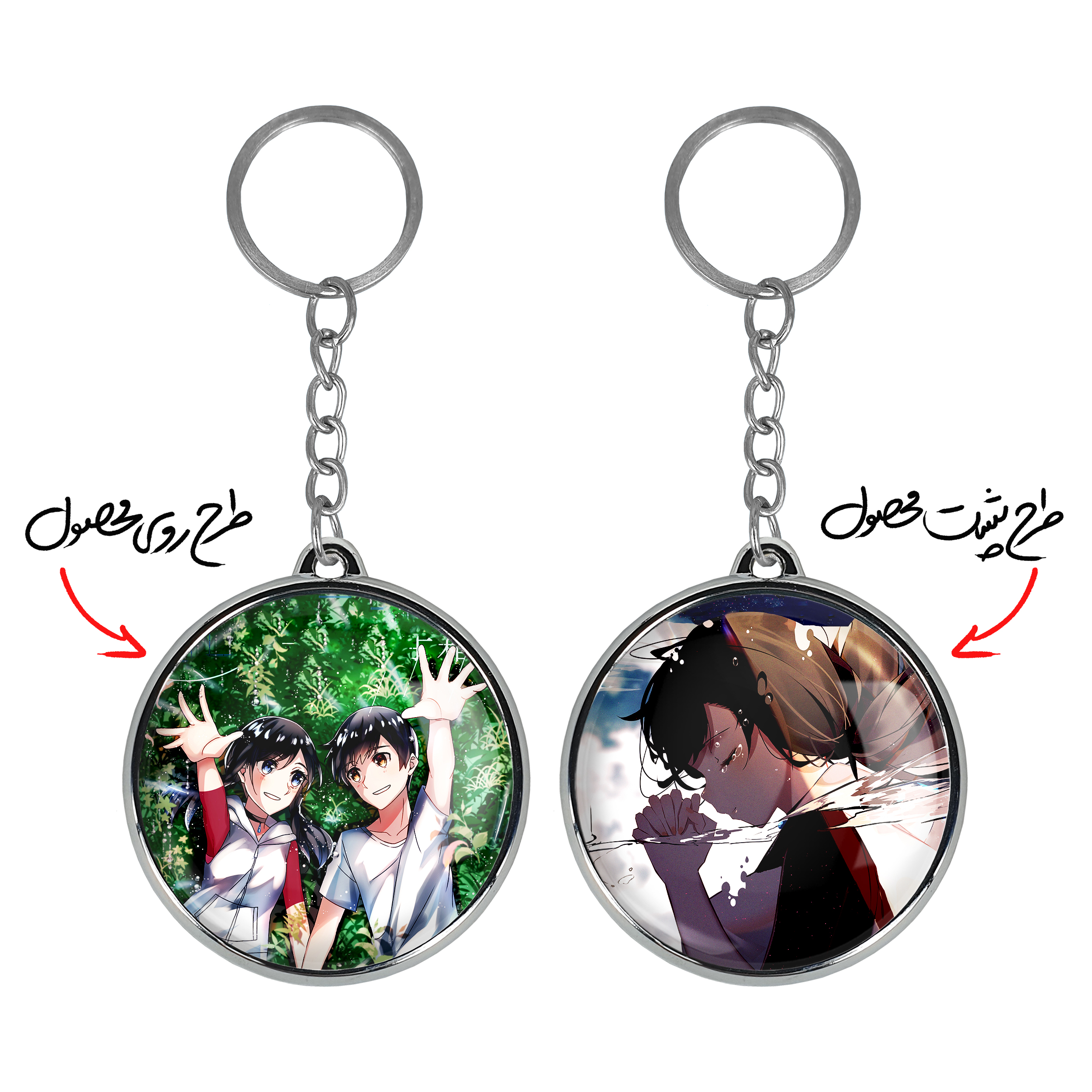 جاکلیدی دوطرفه هداکا و هینا انیمه تغییر آب و هوا با تو خندالو محصولی کاربردی و جدید است که در هر دو سمت محصول، تصویری متفاوت اما از یک موضوع چاپ شده و تفاوت اصلی آن با جاکلیدی های یک طرفه در همین است که هر دو سمت پشت و روی جاکلیدی، طرحی دیدنی و جذاب دارد. همچنین رینگ بکار برده شده برای دور طرح ها آبکاری کروم درجه یک و رنگ ثابت است و برخلاف سایر محصولات مشابه، از رنگ های متفرقه و یا سفید استفاده نشده، که این مهم، زیبایی محصول نهایی را چند برابر کرده است. جاکلیدی های دوطرفه هداکا و هینا انیمه تغییر آب و هوا با تو با استفاده از روکش سلفون براق ضدخش تولید شده که خاصیت ضدخش بودن آن عمر مفید استفاده از جاکلیدی ها را افزایش میدهد. چاپ جاکلیدی ها با دستگاه های استاندارد و با بهترین سطح کیفیت صورت گرفته و طرح با شفافیتی مثال زدنی و با سلفون چسبی تولید شده است که باعث شده محصول نهایی بدون شکست نور دیده شود. همچنین بسته بندی جذاب و مینیمال جاکلیدی دوطرفه هداکا و هینا انیمه تغییر آب و هوا با تو ، آنها را محصولی مناسب هدیه کرده است. زنجیر و حلقه بکار برده شده در جاکلیدی خندالو از نوع حلقه ضخیم و محکم بوده و حین استفاده آسیب نمی بیند.