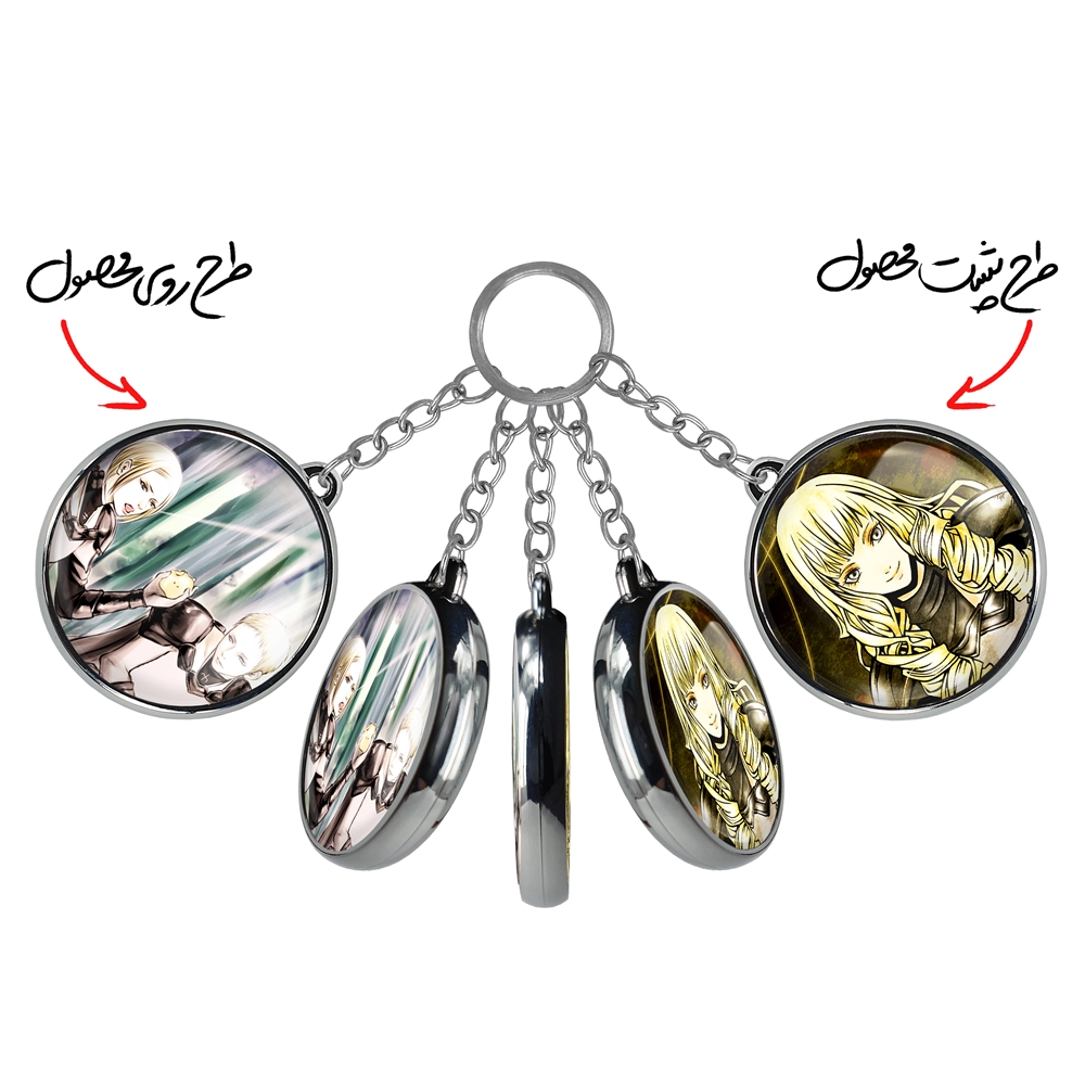 جاکلیدی دوطرفه هلن و دنوه انیمه کلیمور خندالو محصولی کاربردی و جدید است که در هر دو سمت محصول، تصویری متفاوت اما از یک موضوع چاپ شده و تفاوت اصلی آن با جاکلیدی های یک طرفه در همین است که هر دو سمت پشت و روی جاکلیدی، طرحی دیدنی و جذاب دارد. همچنین رینگ بکار برده شده برای دور طرح ها آبکاری کروم درجه یک و رنگ ثابت است و برخلاف سایر محصولات مشابه، از رنگ های متفرقه و یا سفید استفاده نشده، که این مهم، زیبایی محصول نهایی را چند برابر کرده است. جاکلیدی های دوطرفه هلن و دنوه انیمه کلیمور با استفاده از روکش سلفون براق ضدخش تولید شده که خاصیت ضدخش بودن آن عمر مفید استفاده از جاکلیدی ها را افزایش میدهد. چاپ جاکلیدی ها با دستگاه های استاندارد و با بهترین سطح کیفیت صورت گرفته و طرح با شفافیتی مثال زدنی و با سلفون چسبی تولید شده است که باعث شده محصول نهایی بدون شکست نور دیده شود. همچنین بسته بندی جذاب و مینیمال جاکلیدی دوطرفه هلن و دنوه انیمه کلیمور، آنها را محصولی مناسب هدیه کرده است. زنجیر و حلقه بکار برده شده در جاکلیدی خندالو از نوع حلقه ضخیم و محکم بوده و حین استفاده آسیب نمی بیند.