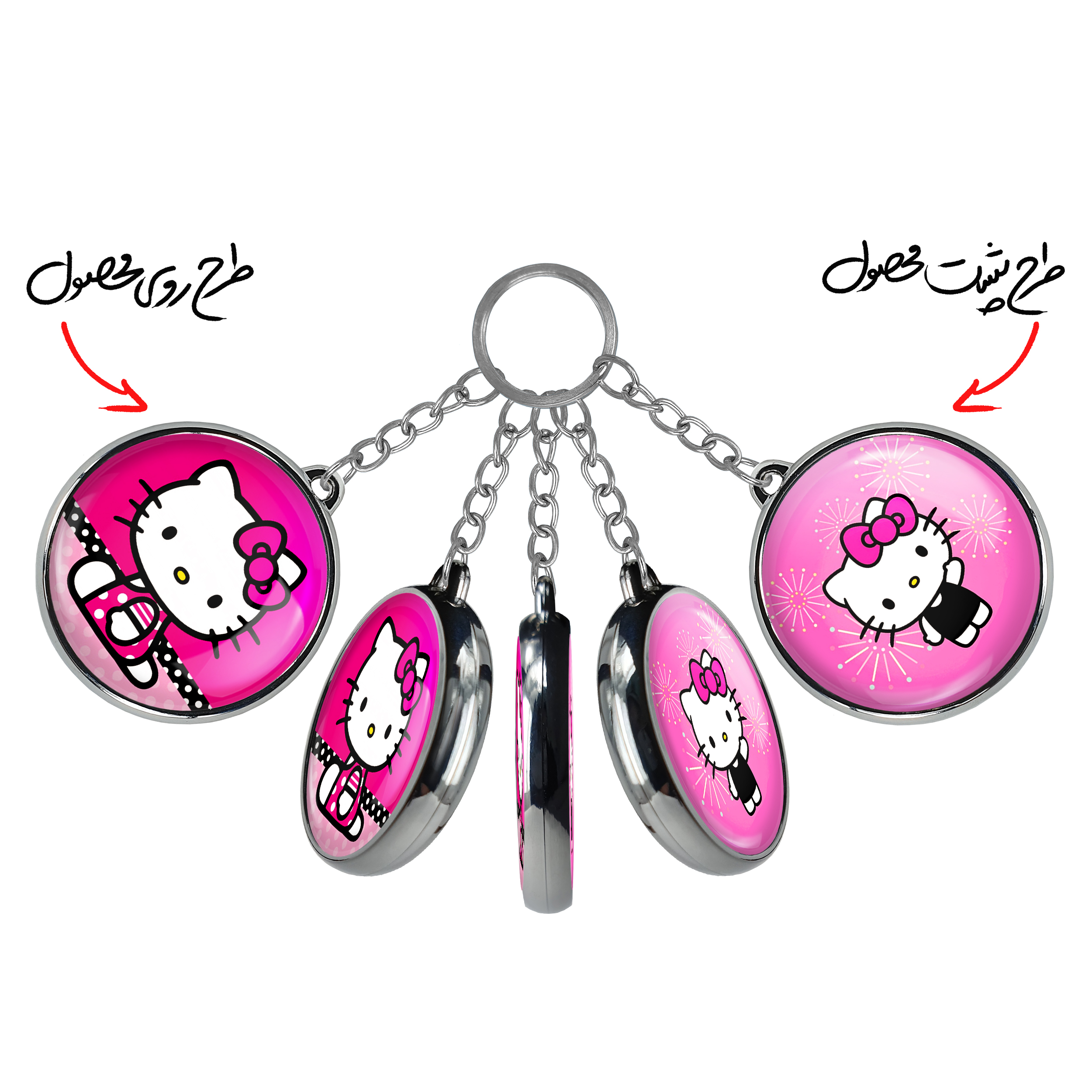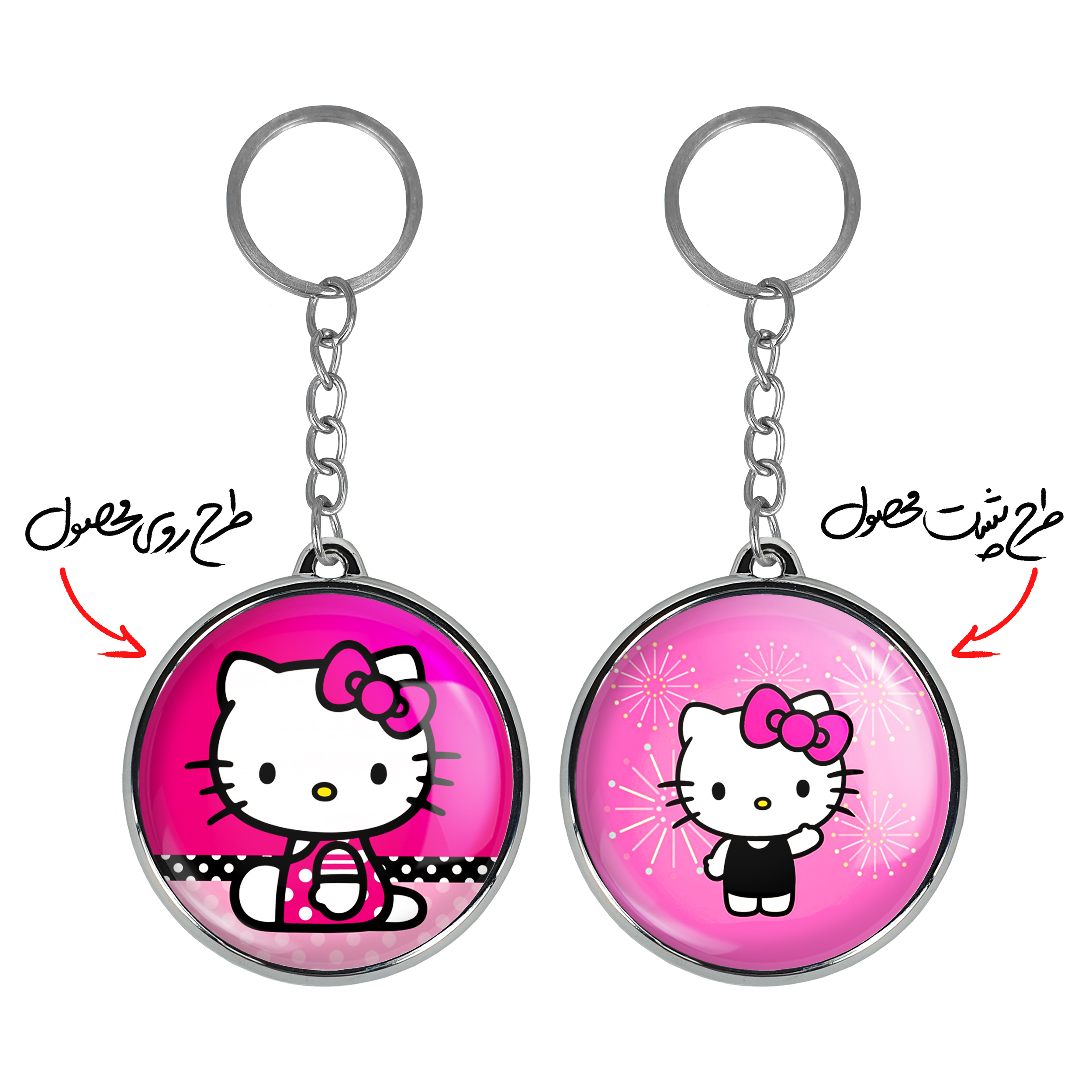 جاکلیدی دوطرفه هلو کیتیخندالو محصولی کاربردی و جدید است که در هر دو سمت محصول، تصویری متفاوت اما از یک موضوع چاپ شده و تفاوت اصلی آن با جاکلیدی های یک طرفه در همین است که هر دو سمت پشت و روی جاکلیدی، طرحی دیدنی و جذاب دارد.