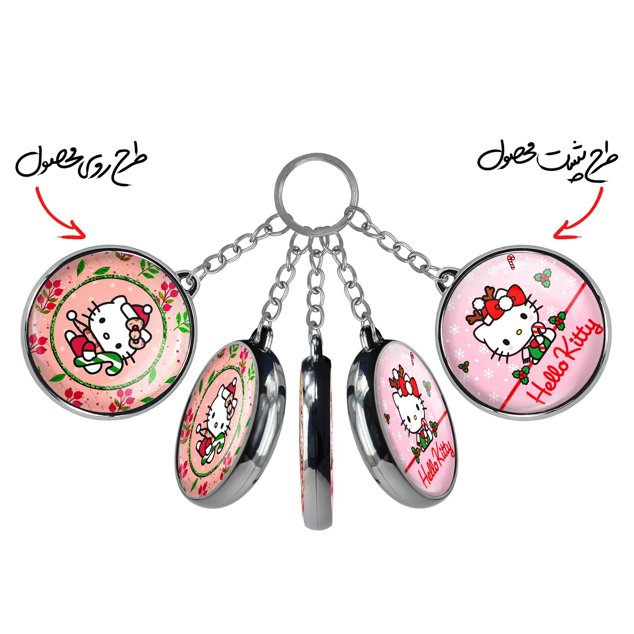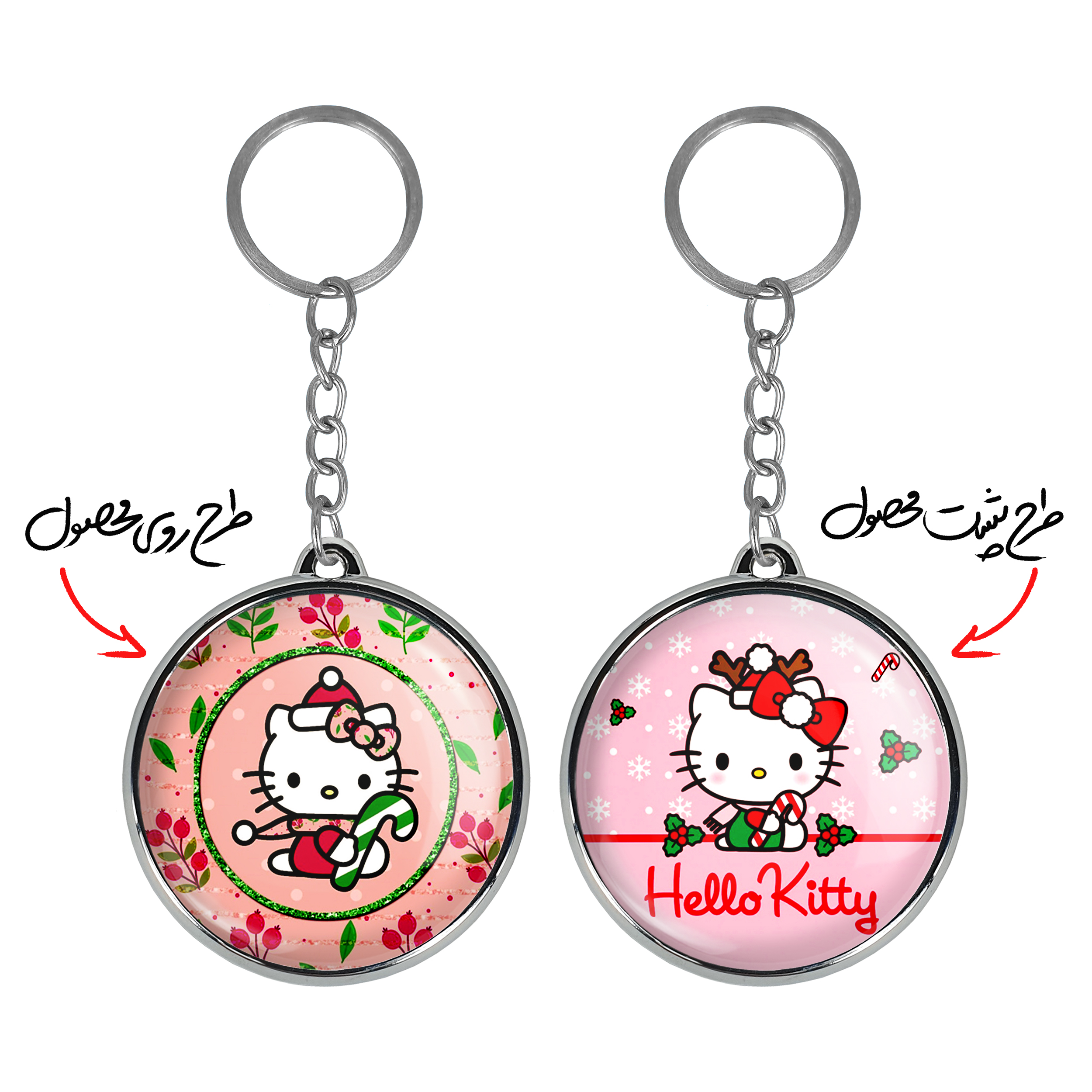 جاکلیدی دوطرفه هلو کیتیخندالو محصولی کاربردی و جدید است که در هر دو سمت محصول، تصویری متفاوت اما از یک موضوع چاپ شده و تفاوت اصلی آن با جاکلیدی های یک طرفه در همین است که هر دو سمت پشت و روی جاکلیدی، طرحی دیدنی و جذاب دارد.