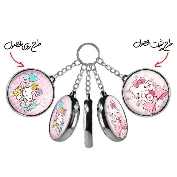 جاکلیدی دوطرفه هلو کیتیخندالو محصولی کاربردی و جدید است که در هر دو سمت محصول، تصویری متفاوت اما از یک موضوع چاپ شده و تفاوت اصلی آن با جاکلیدی های یک طرفه در همین است که هر دو سمت پشت و روی جاکلیدی، طرحی دیدنی و جذاب دارد. همچنین رینگ بکار برده شده برای دور طرح ها آبکاری کروم درجه یک و رنگ ثابت است و برخلاف سایر محصولات مشابه، از رنگ های متفرقه و یا سفید استفاده نشده، که این مهم، زیبایی محصول نهایی را چند برابر کرده است. جاکلیدی های دوطرفه هلو کیتیبا استفاده از روکش سلفون براق ضدخش تولید شده که خاصیت ضدخش بودن آن عمر مفید استفاده از جاکلیدی ها را افزایش میدهد. چاپ جاکلیدی ها با دستگاه های استاندارد و با بهترین سطح کیفیت صورت گرفته و طرح با شفافیتی مثال زدنی و با سلفون چسبی تولید شده است که باعث شده محصول نهایی بدون شکست نور دیده شود. همچنین بسته بندی جذاب و مینیمال جاکلیدی دوطرفه هلو کیتی، آنها را محصولی مناسب هدیه کرده است. زنجیر و حلقه بکار برده شده در جاکلیدی خندالو از نوع حلقه ضخیم و محکم بوده و حین استفاده آسیب نمی بیند.