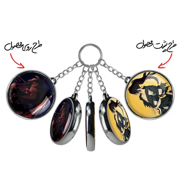 جاکلیدی دوطرفه هیاکیمارو انیمه دورورو خندالو محصولی کاربردی و جدید است که در هر دو سمت محصول، تصویری متفاوت اما از یک موضوع چاپ شده و تفاوت اصلی آن با جاکلیدی های یک طرفه در همین است که هر دو سمت پشت و روی جاکلیدی، طرحی دیدنی و جذاب دارد.