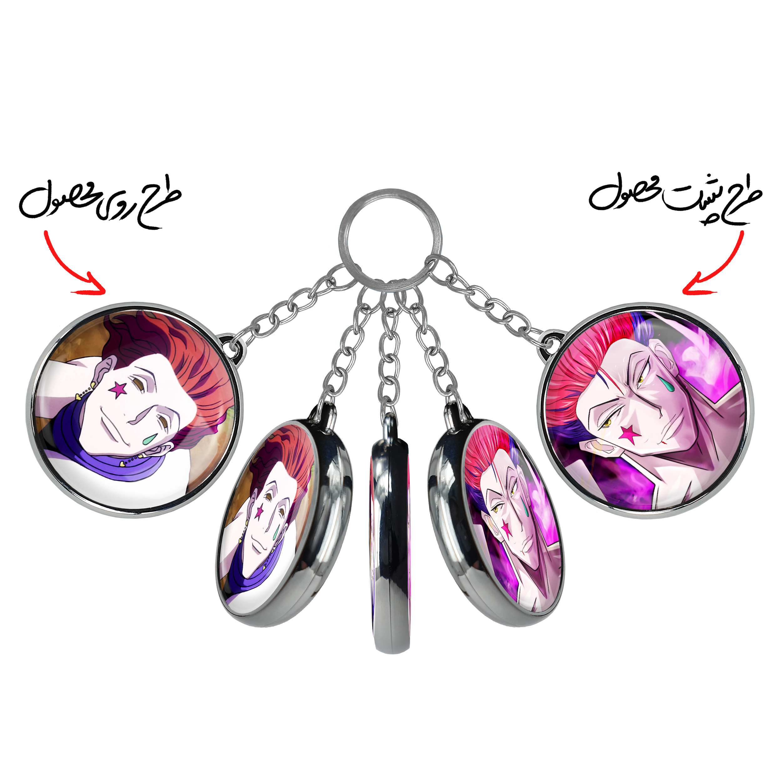جاکلیدی دوطرفه هیسوکا جوکر انیمه هانتر ایکس هانتر Hunter × Hunter خندالو محصولی کاربردی و جدید است که در هر دو سمت محصول، تصویری متفاوت اما از یک موضوع چاپ شده و تفاوت اصلی آن با جاکلیدی های یک طرفه در همین است که هر دو سمت پشت و روی جاکلیدی، طرحی دیدنی و جذاب دارد.