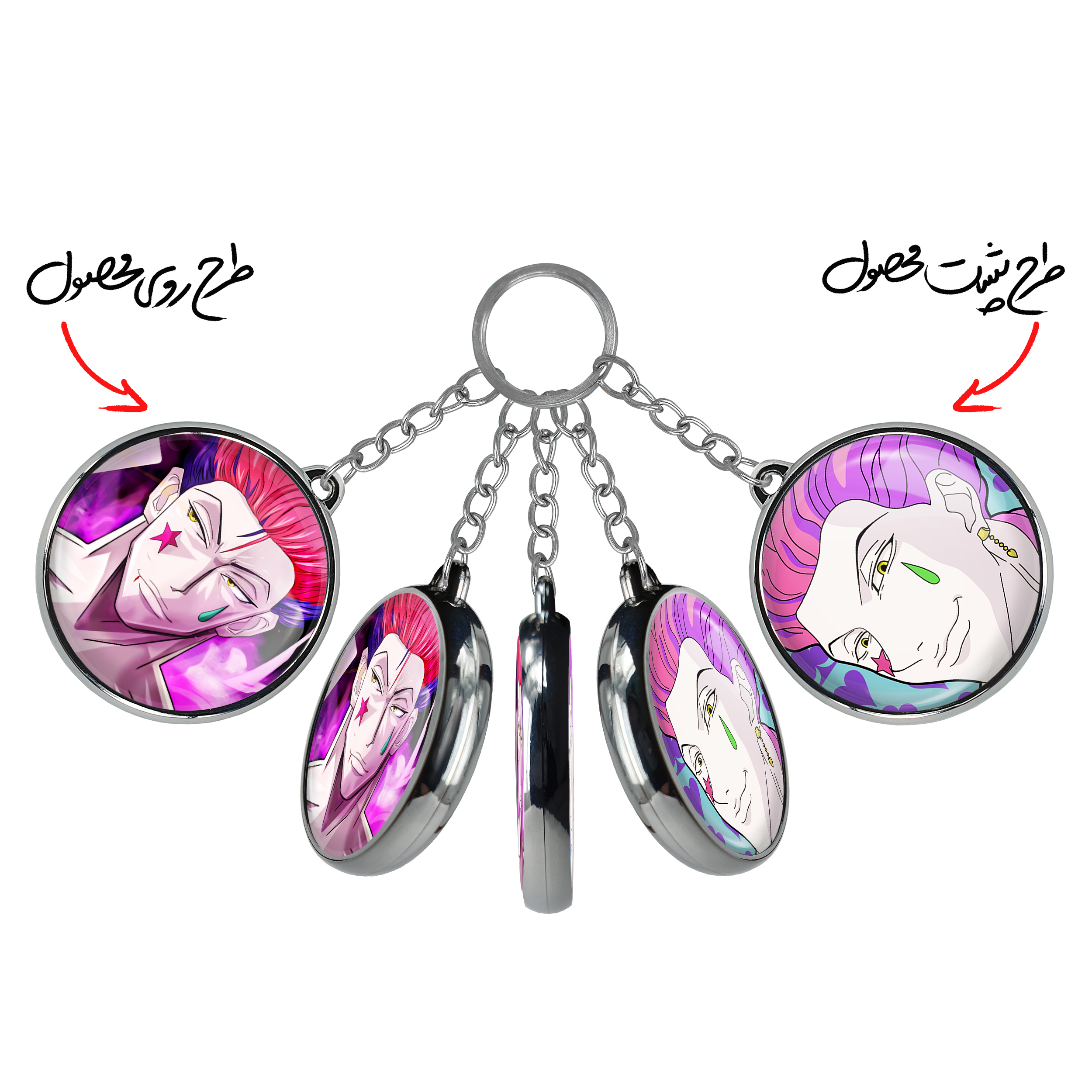 جاکلیدی دوطرفه هیسوکا جوکر انیمه هانتر ایکس هانتر Hunter × Hunter خندالو محصولی کاربردی و جدید است که در هر دو سمت محصول، تصویری متفاوت اما از یک موضوع چاپ شده و تفاوت اصلی آن با جاکلیدی های یک طرفه در همین است که هر دو سمت پشت و روی جاکلیدی، طرحی دیدنی و جذاب دارد.