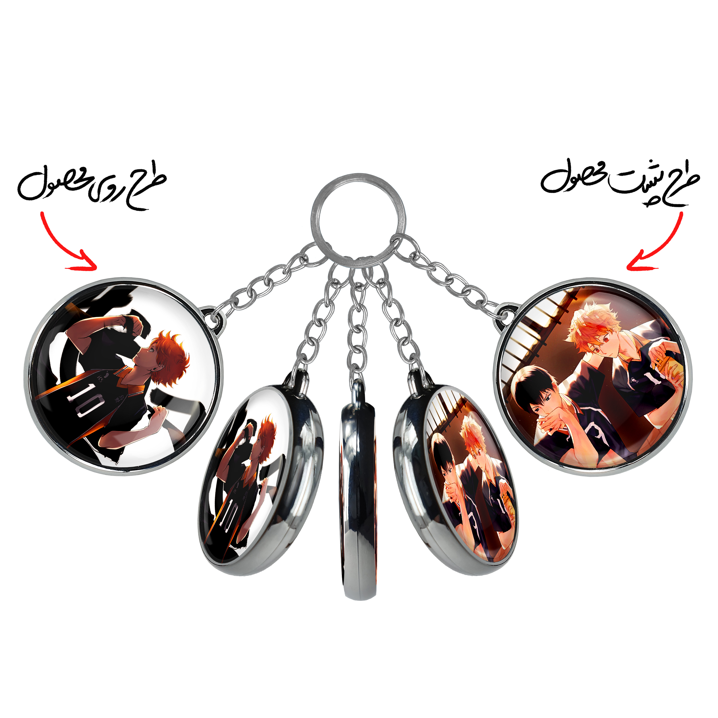 جاکلیدی دوطرفه هیناتا شویو انیمه آبشار سرنوشت هایکیو کاگیاما خندالو محصولی کاربردی و جدید است که در هر دو سمت محصول، تصویری متفاوت اما از یک موضوع چاپ شده و تفاوت اصلی آن با جاکلیدی های یک طرفه در همین است که هر دو سمت پشت و روی جاکلیدی، طرحی دیدنی و جذاب دارد.