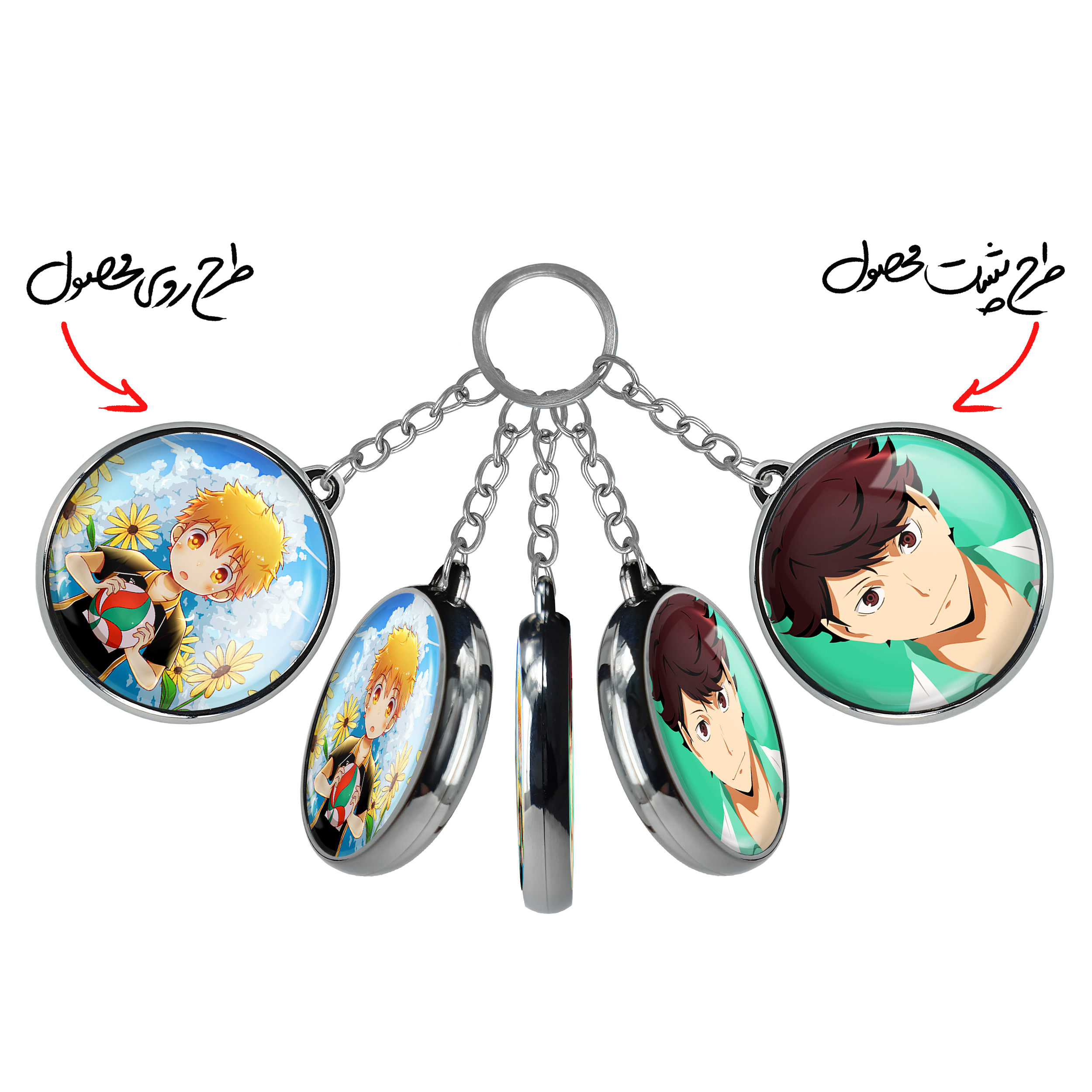 جاکلیدی دوطرفه هیناتا شویو انیمه آبشار سرنوشت هایکیو کاگیاما خندالو محصولی کاربردی و جدید است که در هر دو سمت محصول، تصویری متفاوت اما از یک موضوع چاپ شده و تفاوت اصلی آن با جاکلیدی های یک طرفه در همین است که هر دو سمت پشت و روی جاکلیدی، طرحی دیدنی و جذاب دارد.