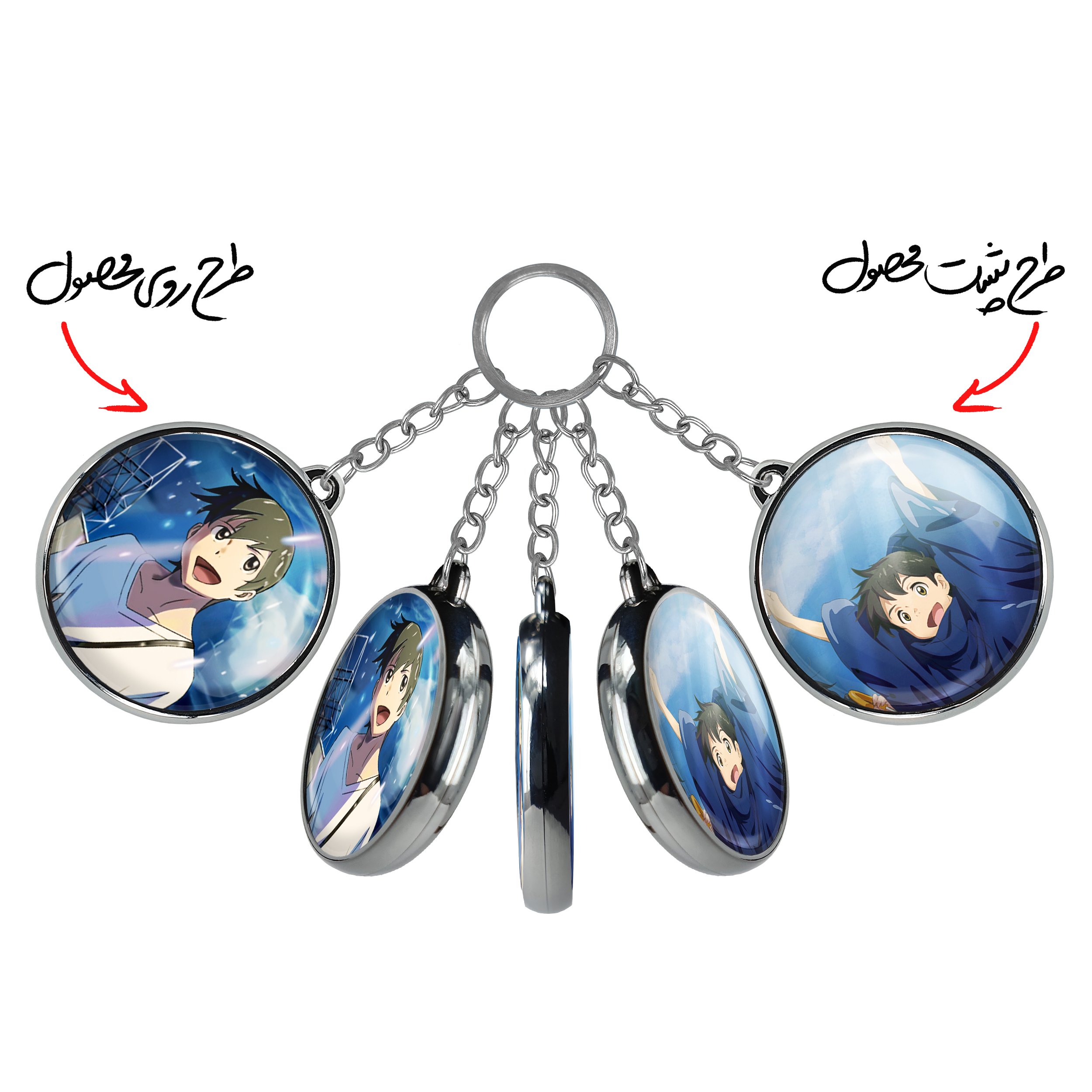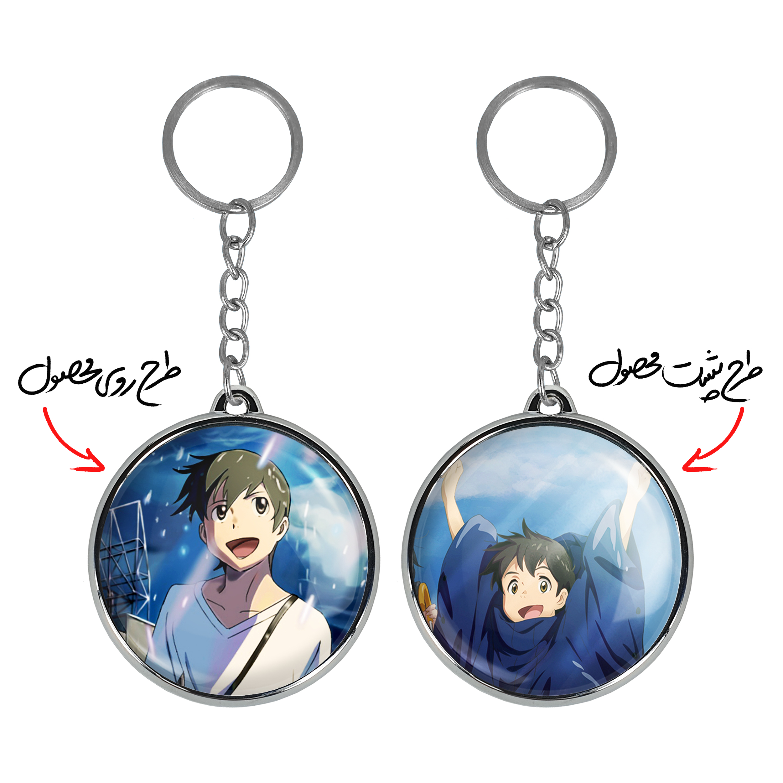 جاکلیدی دوطرفه هینا و هادوکا انیمه تغییر آب و هوا با تو خندالو محصولی کاربردی و جدید است که در هر دو سمت محصول، تصویری متفاوت اما از یک موضوع چاپ شده و تفاوت اصلی آن با جاکلیدی های یک طرفه در همین است که هر دو سمت پشت و روی جاکلیدی، طرحی دیدنی و جذاب دارد. همچنین رینگ بکار برده شده برای دور طرح ها آبکاری کروم درجه یک و رنگ ثابت است و برخلاف سایر محصولات مشابه، از رنگ های متفرقه و یا سفید استفاده نشده، که این مهم، زیبایی محصول نهایی را چند برابر کرده است. جاکلیدی های دوطرفه هینا و هادوکا انیمه تغییر آب و هوا با تو با استفاده از روکش سلفون براق ضدخش تولید شده که خاصیت ضدخش بودن آن عمر مفید استفاده از جاکلیدی ها را افزایش میدهد. چاپ جاکلیدی ها با دستگاه های استاندارد و با بهترین سطح کیفیت صورت گرفته و طرح با شفافیتی مثال زدنی و با سلفون چسبی تولید شده است که باعث شده محصول نهایی بدون شکست نور دیده شود. همچنین بسته بندی جذاب و مینیمال جاکلیدی دوطرفه هینا و هادوکا انیمه تغییر آب و هوا با تو ، آنها را محصولی مناسب هدیه کرده است. زنجیر و حلقه بکار برده شده در جاکلیدی خندالو از نوع حلقه ضخیم و محکم بوده و حین استفاده آسیب نمی بیند.