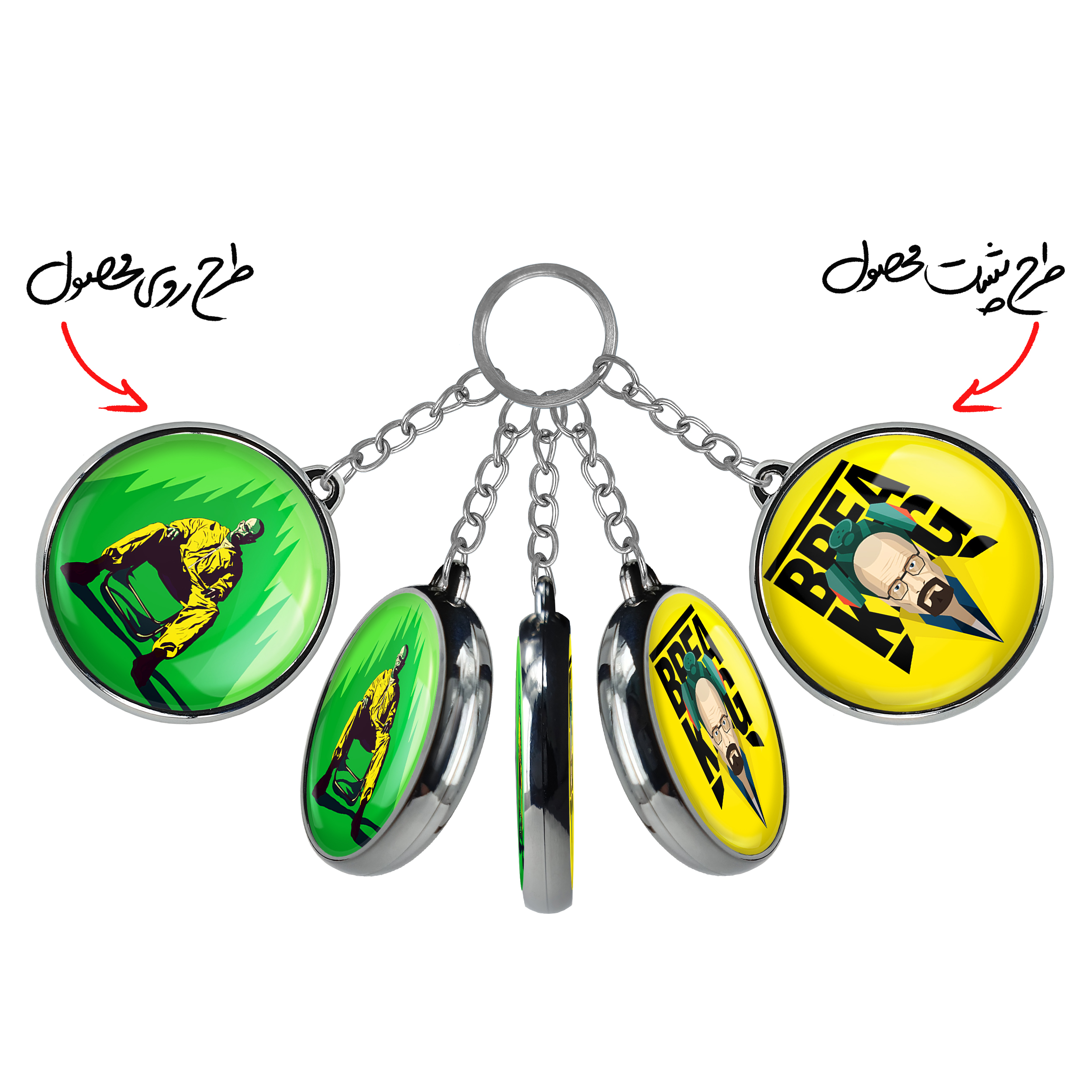 جاکلیدی دوطرفه والتر وایت سریال بریکینگ بد Breaking Bad خندالو محصولی کاربردی و جدید است که در هر دو سمت محصول، تصویری متفاوت اما از یک موضوع چاپ شده و تفاوت اصلی آن با جاکلیدی های یک طرفه در همین است که هر دو سمت پشت و روی جاکلیدی، طرحی دیدنی و جذاب دارد. همچنین رینگ بکار برده شده برای دور طرح ها آبکاری کروم درجه یک و رنگ ثابت است و برخلاف سایر محصولات مشابه، از رنگ های متفرقه و یا سفید استفاده نشده، که این مهم، زیبایی محصول نهایی را چند برابر کرده است. جاکلیدی های دوطرفه والتر وایت سریال بریکینگ بد Breaking Bad با استفاده از روکش سلفون براق ضدخش تولید شده که خاصیت ضدخش بودن آن عمر مفید استفاده از جاکلیدی ها را افزایش میدهد. چاپ جاکلیدی ها با دستگاه های استاندارد و با بهترین سطح کیفیت صورت گرفته و طرح با شفافیتی مثال زدنی و با سلفون چسبی تولید شده است که باعث شده محصول نهایی بدون شکست نور دیده شود. همچنین بسته بندی جذاب و مینیمال جاکلیدی دوطرفه والتر وایت سریال بریکینگ بد Breaking Bad ، آنها را محصولی مناسب هدیه کرده است. زنجیر و حلقه بکار برده شده در جاکلیدی خندالو از نوع حلقه ضخیم و محکم بوده و حین استفاده آسیب نمی بیند.