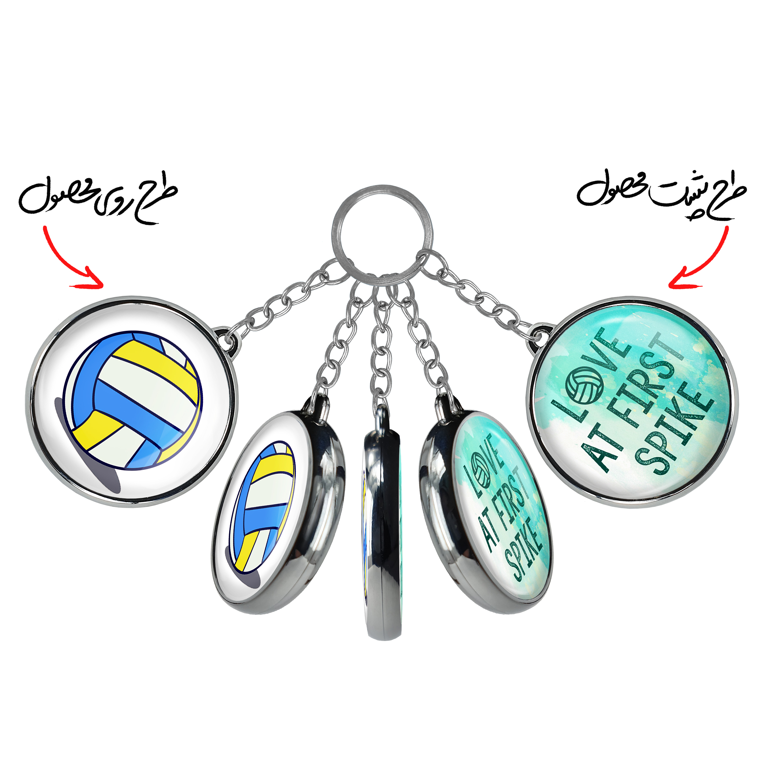 جاکلیدی دوطرفه والیبال Volleyballخندالو محصولی کاربردی و جدید است که در هر دو سمت محصول، تصویری متفاوت اما از یک موضوع چاپ شده و تفاوت اصلی آن با جاکلیدی های یک طرفه در همین است که هر دو سمت پشت و روی جاکلیدی، طرحی دیدنی و جذاب دارد. همچنین رینگ بکار برده شده برای دور طرح ها آبکاری کروم درجه یک و رنگ ثابت است و برخلاف سایر محصولات مشابه، از رنگ های متفرقه و یا سفید استفاده نشده، که این مهم، زیبایی محصول نهایی را چند برابر کرده است. جاکلیدی های دوطرفه والیبال Volleyballبا استفاده از روکش سلفون براق ضدخش تولید شده که خاصیت ضدخش بودن آن عمر مفید استفاده از جاکلیدی ها را افزایش میدهد. چاپ جاکلیدی ها با دستگاه های استاندارد و با بهترین سطح کیفیت صورت گرفته و طرح با شفافیتی مثال زدنی و با سلفون چسبی تولید شده است که باعث شده محصول نهایی بدون شکست نور دیده شود. همچنین بسته بندی جذاب و مینیمال جاکلیدی دوطرفه والیبال Volleyball، آنها را محصولی مناسب هدیه کرده است. زنجیر و حلقه بکار برده شده در جاکلیدی خندالو از نوع حلقه ضخیم و محکم بوده و حین استفاده آسیب نمی بیند.