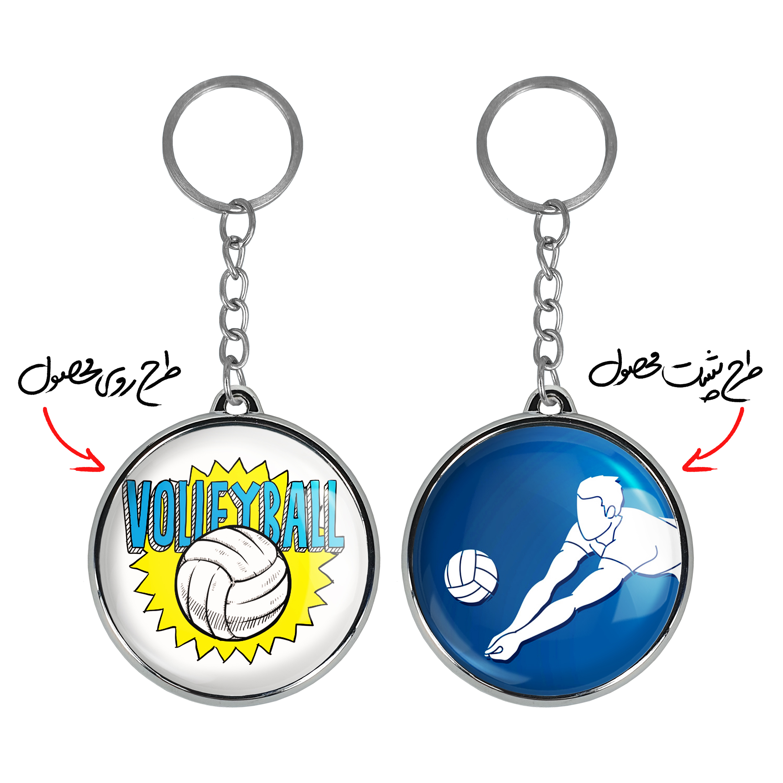 جاکلیدی دوطرفه والیبال Volleyballخندالو محصولی کاربردی و جدید است که در هر دو سمت محصول، تصویری متفاوت اما از یک موضوع چاپ شده و تفاوت اصلی آن با جاکلیدی های یک طرفه در همین است که هر دو سمت پشت و روی جاکلیدی، طرحی دیدنی و جذاب دارد. همچنین رینگ بکار برده شده برای دور طرح ها آبکاری کروم درجه یک و رنگ ثابت است و برخلاف سایر محصولات مشابه، از رنگ های متفرقه و یا سفید استفاده نشده، که این مهم، زیبایی محصول نهایی را چند برابر کرده است. جاکلیدی های دوطرفه والیبال Volleyballبا استفاده از روکش سلفون براق ضدخش تولید شده که خاصیت ضدخش بودن آن عمر مفید استفاده از جاکلیدی ها را افزایش میدهد. چاپ جاکلیدی ها با دستگاه های استاندارد و با بهترین سطح کیفیت صورت گرفته و طرح با شفافیتی مثال زدنی و با سلفون چسبی تولید شده است که باعث شده محصول نهایی بدون شکست نور دیده شود. همچنین بسته بندی جذاب و مینیمال جاکلیدی دوطرفه والیبال Volleyball، آنها را محصولی مناسب هدیه کرده است. زنجیر و حلقه بکار برده شده در جاکلیدی خندالو از نوع حلقه ضخیم و محکم بوده و حین استفاده آسیب نمی بیند.