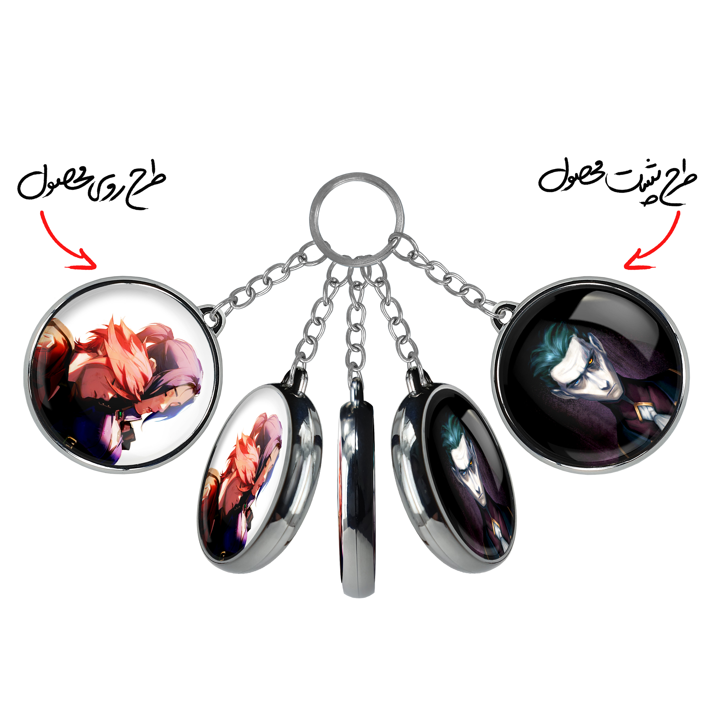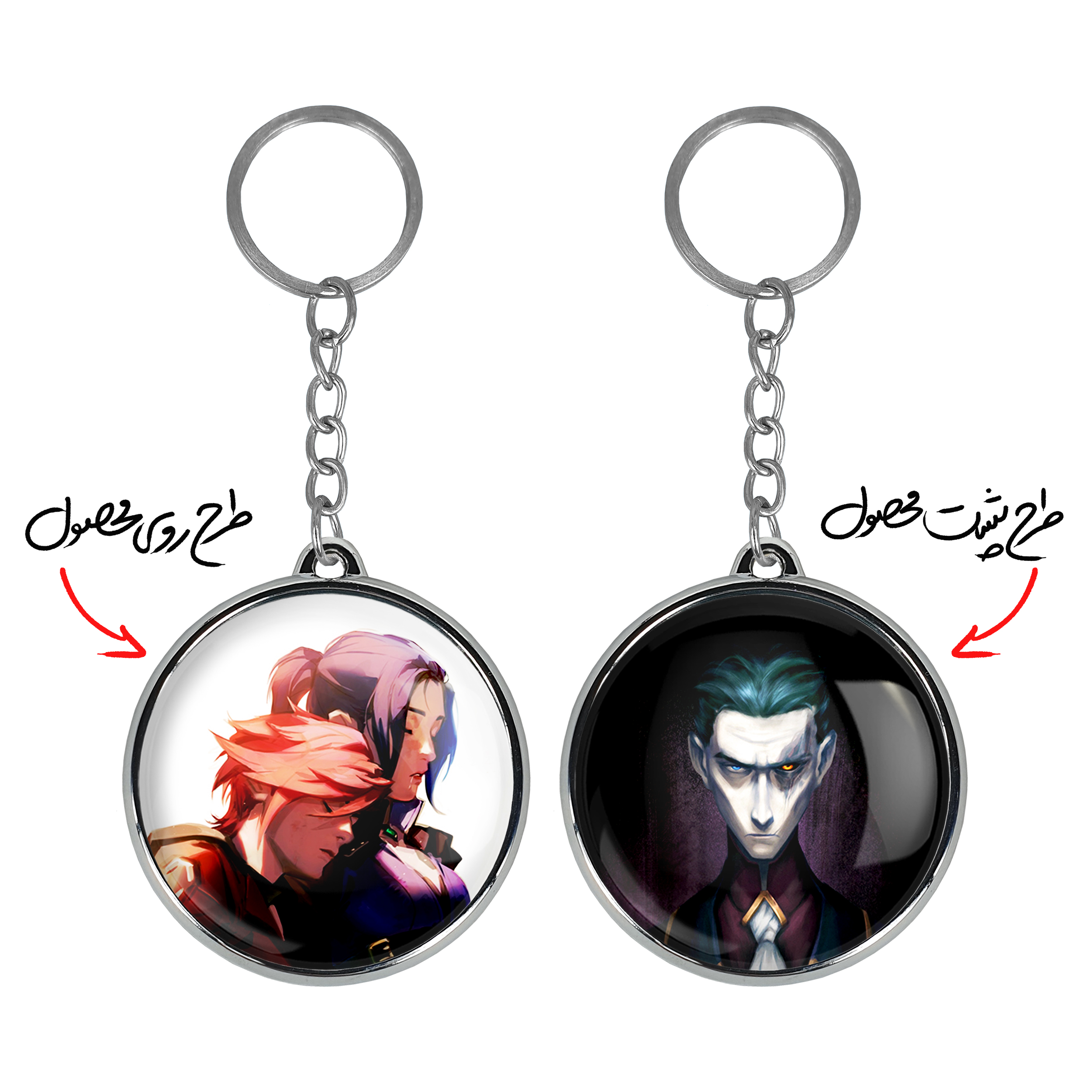 جاکلیدی دوطرفه وای و کیتلین آرکین Arcane خندالو محصولی کاربردی و جدید است که در هر دو سمت محصول، تصویری متفاوت اما از یک موضوع چاپ شده و تفاوت اصلی آن با جاکلیدی های یک طرفه در همین است که هر دو سمت پشت و روی جاکلیدی، طرحی دیدنی و جذاب دارد. همچنین رینگ بکار برده شده برای دور طرح ها آبکاری کروم درجه یک و رنگ ثابت است و برخلاف سایر محصولات مشابه، از رنگ های متفرقه و یا سفید استفاده نشده، که این مهم، زیبایی محصول نهایی را چند برابر کرده است. جاکلیدی های دوطرفه وای و کیتلین آرکین Arcane با استفاده از روکش سلفون براق ضدخش تولید شده که خاصیت ضدخش بودن آن عمر مفید استفاده از جاکلیدی ها را افزایش میدهد. چاپ جاکلیدی ها با دستگاه های استاندارد و با بهترین سطح کیفیت صورت گرفته و طرح با شفافیتی مثال زدنی و با سلفون چسبی تولید شده است که باعث شده محصول نهایی بدون شکست نور دیده شود. همچنین بسته بندی جذاب و مینیمال جاکلیدی دوطرفه وای و کیتلین آرکین Arcane ، آنها را محصولی مناسب هدیه کرده است. زنجیر و حلقه بکار برده شده در جاکلیدی خندالو از نوع حلقه ضخیم و محکم بوده و حین استفاده آسیب نمی بیند.