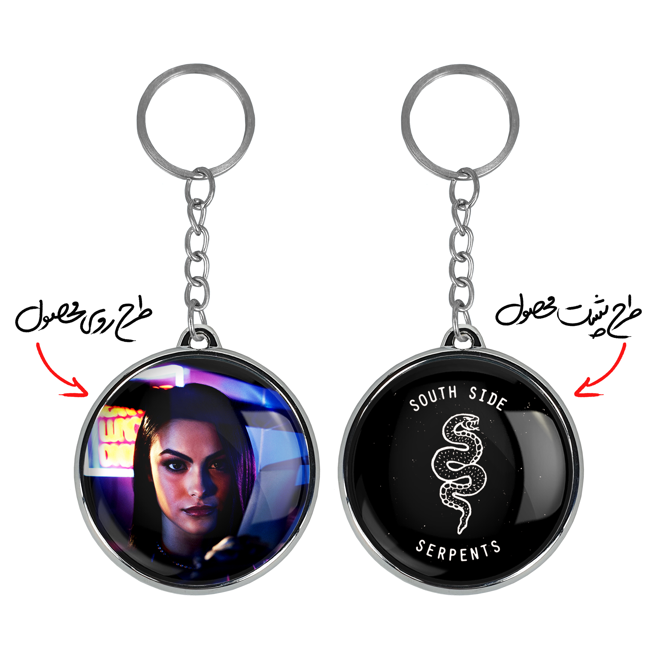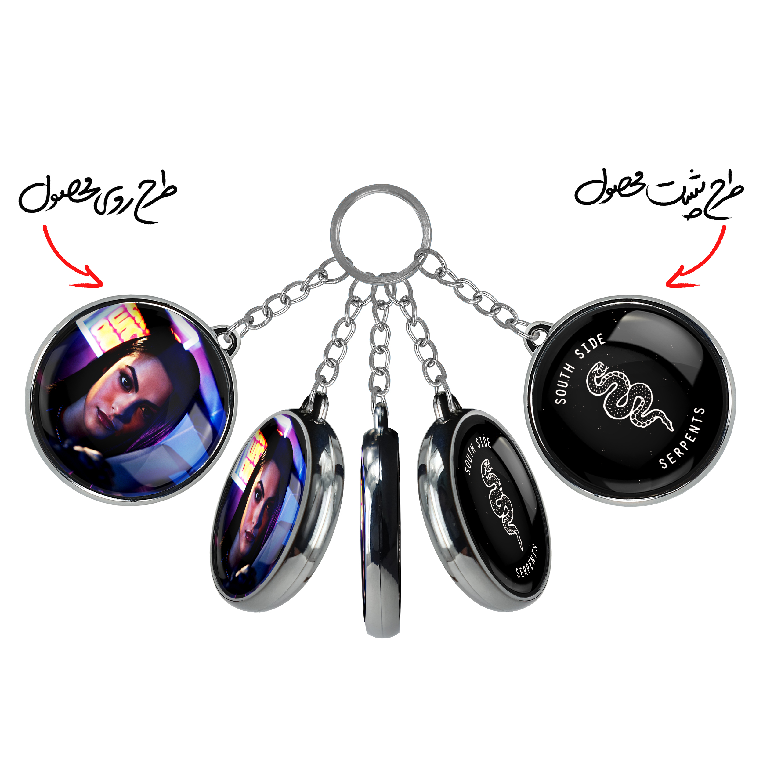 جاکلیدی دوطرفه ورونیکا سریال ریوردیل Riverdaleخندالو محصولی کاربردی و جدید است که در هر دو سمت محصول، تصویری متفاوت اما از یک موضوع چاپ شده و تفاوت اصلی آن با جاکلیدی های یک طرفه در همین است که هر دو سمت پشت و روی جاکلیدی، طرحی دیدنی و جذاب دارد. همچنین رینگ بکار برده شده برای دور طرح ها آبکاری کروم درجه یک و رنگ ثابت است و برخلاف سایر محصولات مشابه، از رنگ های متفرقه و یا سفید استفاده نشده، که این مهم، زیبایی محصول نهایی را چند برابر کرده است. جاکلیدی های دوطرفه ورونیکا سریال ریوردیل Riverdaleبا استفاده از روکش سلفون براق ضدخش تولید شده که خاصیت ضدخش بودن آن عمر مفید استفاده از جاکلیدی ها را افزایش میدهد. چاپ جاکلیدی ها با دستگاه های استاندارد و با بهترین سطح کیفیت صورت گرفته و طرح با شفافیتی مثال زدنی و با سلفون چسبی تولید شده است که باعث شده محصول نهایی بدون شکست نور دیده شود. همچنین بسته بندی جذاب و مینیمال جاکلیدی دوطرفه ورونیکا سریال ریوردیل Riverdale، آنها را محصولی مناسب هدیه کرده است. زنجیر و حلقه بکار برده شده در جاکلیدی خندالو از نوع حلقه ضخیم و محکم بوده و حین استفاده آسیب نمی بیند.