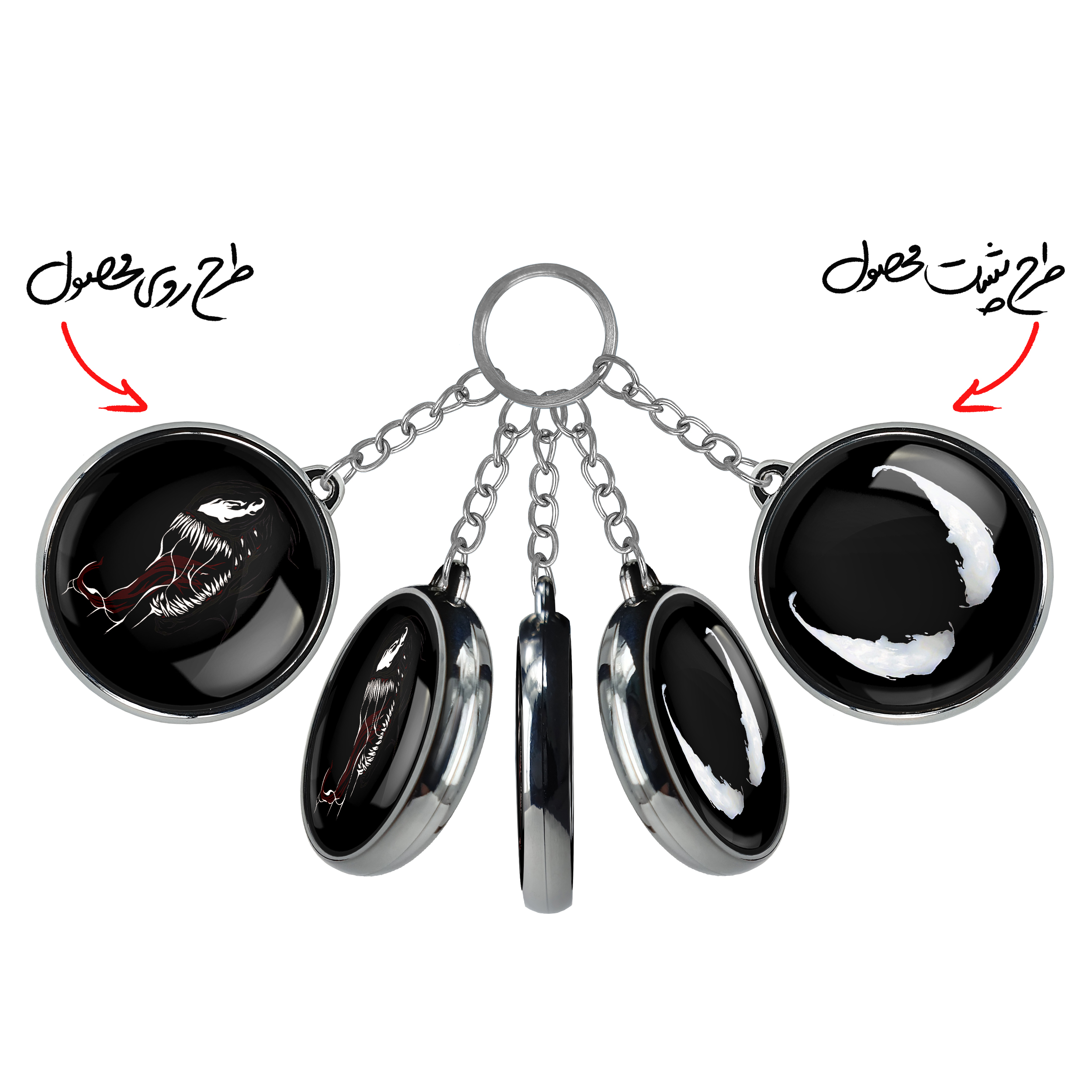 جاکلیدی دوطرفه ونوم Venomخندالو محصولی کاربردی و جدید است که در هر دو سمت محصول، تصویری متفاوت اما از یک موضوع چاپ شده و تفاوت اصلی آن با جاکلیدی های یک طرفه در همین است که هر دو سمت پشت و روی جاکلیدی، طرحی دیدنی و جذاب دارد. همچنین رینگ بکار برده شده برای دور طرح ها آبکاری کروم درجه یک و رنگ ثابت است و برخلاف سایر محصولات مشابه، از رنگ های متفرقه و یا سفید استفاده نشده، که این مهم، زیبایی محصول نهایی را چند برابر کرده است. جاکلیدی های دوطرفه ونوم Venomبا استفاده از روکش سلفون براق ضدخش تولید شده که خاصیت ضدخش بودن آن عمر مفید استفاده از جاکلیدی ها را افزایش میدهد. چاپ جاکلیدی ها با دستگاه های استاندارد و با بهترین سطح کیفیت صورت گرفته و طرح با شفافیتی مثال زدنی و با سلفون چسبی تولید شده است که باعث شده محصول نهایی بدون شکست نور دیده شود. همچنین بسته بندی جذاب و مینیمال جاکلیدی دوطرفه ونوم Venom، آنها را محصولی مناسب هدیه کرده است. زنجیر و حلقه بکار برده شده در جاکلیدی خندالو از نوع حلقه ضخیم و محکم بوده و حین استفاده آسیب نمی بیند.