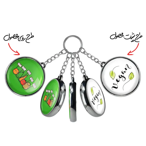 جاکلیدی دوطرفه وگن Veganخندالو محصولی کاربردی و جدید است که در هر دو سمت محصول، تصویری متفاوت اما از یک موضوع چاپ شده و تفاوت اصلی آن با جاکلیدی های یک طرفه در همین است که هر دو سمت پشت و روی جاکلیدی، طرحی دیدنی و جذاب دارد.