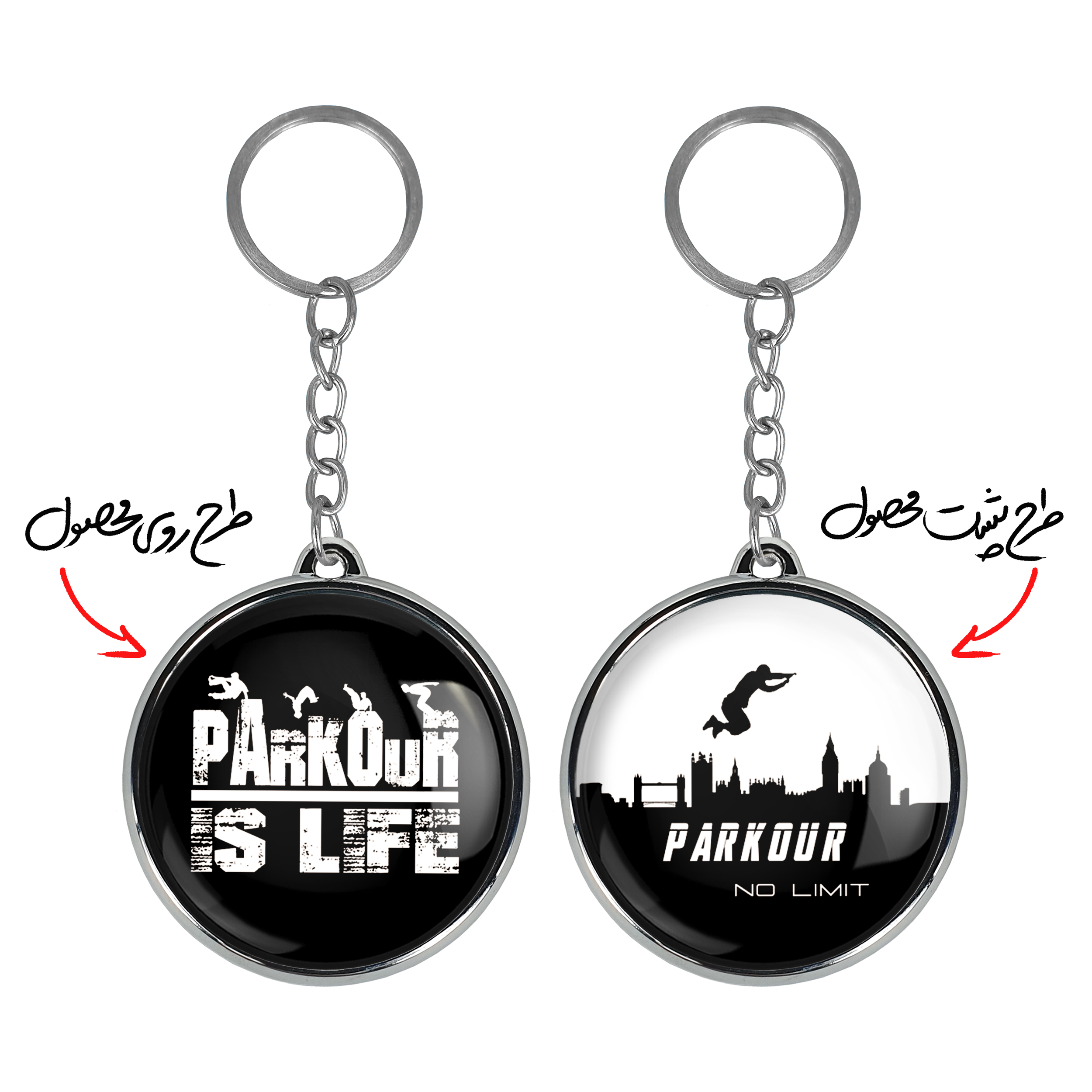 جاکلیدی دوطرفه پارکورخندالو محصولی کاربردی و جدید است که در هر دو سمت محصول، تصویری متفاوت اما از یک موضوع چاپ شده و تفاوت اصلی آن با جاکلیدی های یک طرفه در همین است که هر دو سمت پشت و روی جاکلیدی، طرحی دیدنی و جذاب دارد.