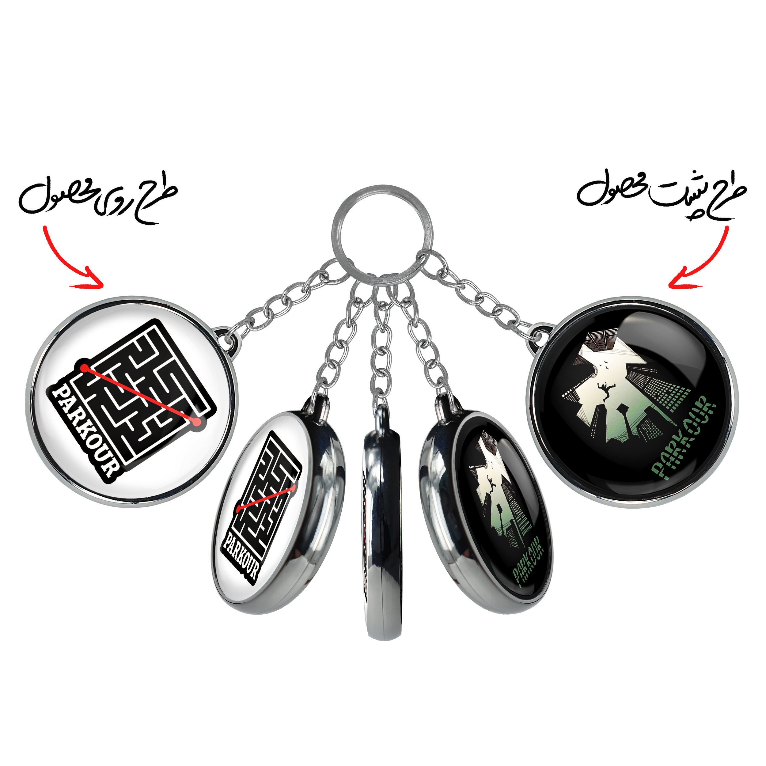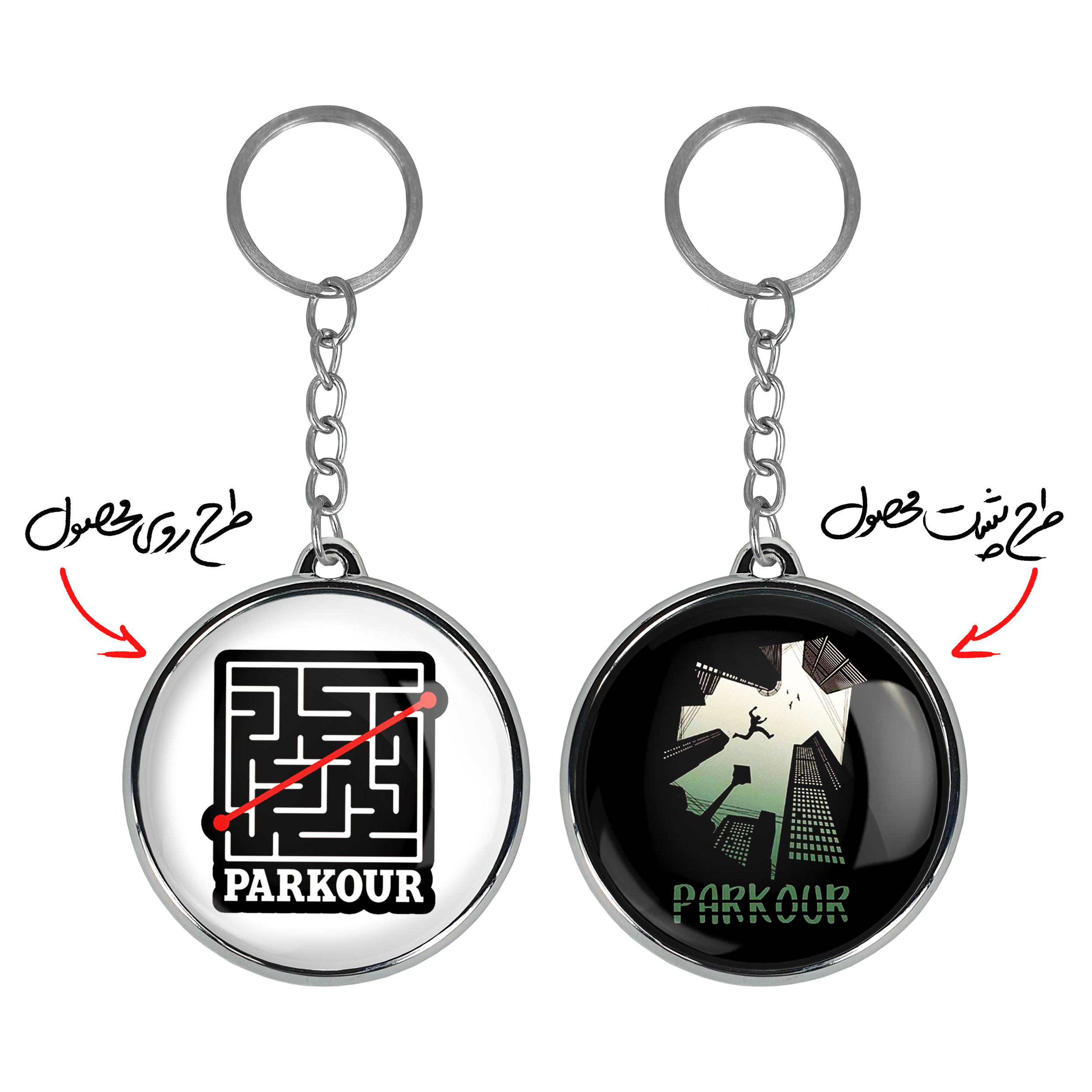 جاکلیدی دوطرفه پارکورخندالو محصولی کاربردی و جدید است که در هر دو سمت محصول، تصویری متفاوت اما از یک موضوع چاپ شده و تفاوت اصلی آن با جاکلیدی های یک طرفه در همین است که هر دو سمت پشت و روی جاکلیدی، طرحی دیدنی و جذاب دارد.