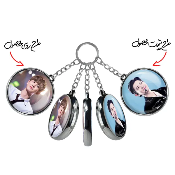 جاکلیدی دوطرفه پارک چانیول گروه اکسو EXO خندالو محصولی کاربردی و جدید است که در هر دو سمت محصول، تصویری متفاوت اما از یک موضوع چاپ شده و تفاوت اصلی آن با جاکلیدی های یک طرفه در همین است که هر دو سمت پشت و روی جاکلیدی، طرحی دیدنی و جذاب دارد.