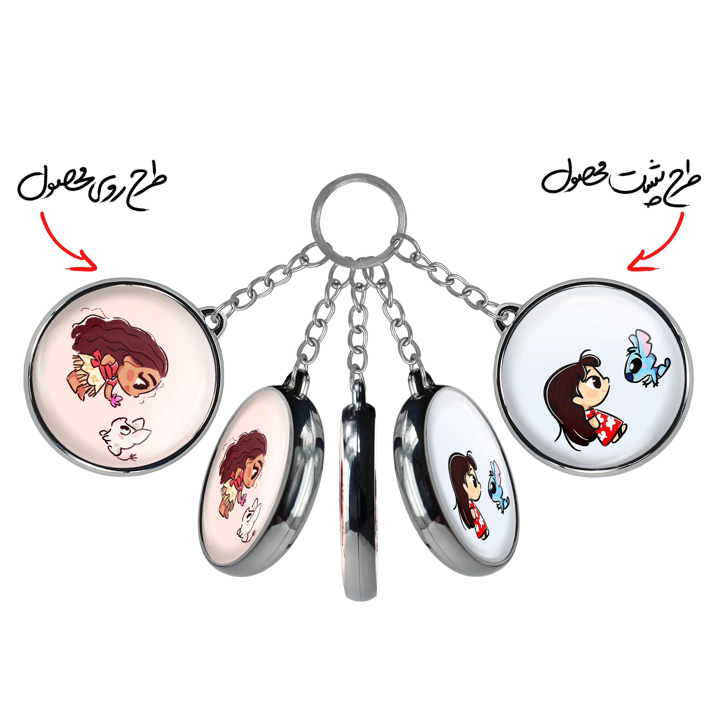 جاکلیدی دوطرفه پرنسس دیزنی موآناخندالو محصولی کاربردی و جدید است که در هر دو سمت محصول، تصویری متفاوت اما از یک موضوع چاپ شده و تفاوت اصلی آن با جاکلیدی های یک طرفه در همین است که هر دو سمت پشت و روی جاکلیدی، طرحی دیدنی و جذاب دارد.