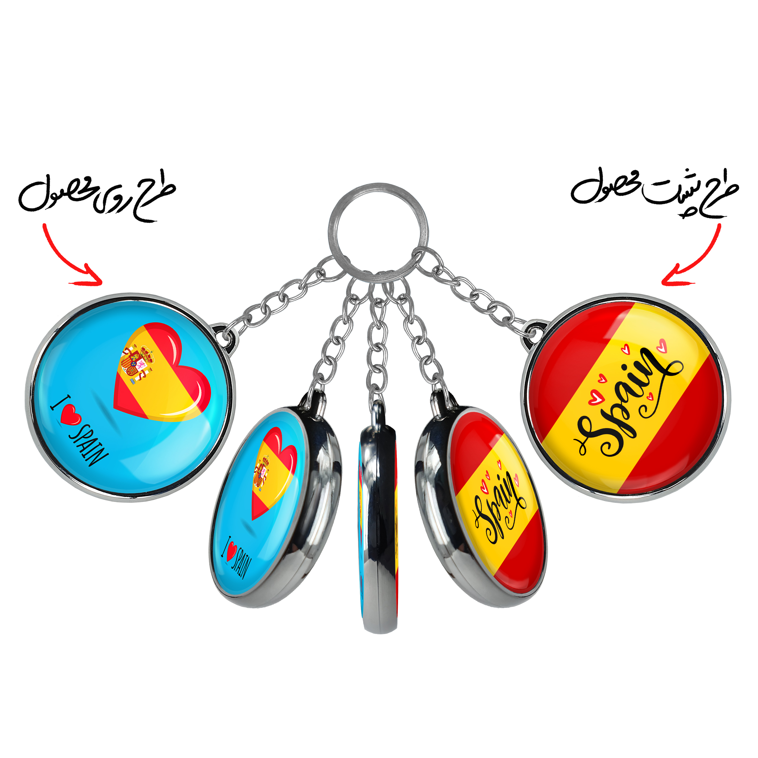جاکلیدی دوطرفه پرچم اسپانیا خندالو محصولی کاربردی و جدید است که در هر دو سمت محصول، تصویری متفاوت اما از یک موضوع چاپ شده و تفاوت اصلی آن با جاکلیدی های یک طرفه در همین است که هر دو سمت پشت و روی جاکلیدی، طرحی دیدنی و جذاب دارد. همچنین رینگ بکار برده شده برای دور طرح ها آبکاری کروم درجه یک و رنگ ثابت است و برخلاف سایر محصولات مشابه، از رنگ های متفرقه و یا سفید استفاده نشده، که این مهم، زیبایی محصول نهایی را چند برابر کرده است. جاکلیدی های دوطرفه پرچم اسپانیا با استفاده از روکش سلفون براق ضدخش تولید شده که خاصیت ضدخش بودن آن عمر مفید استفاده از جاکلیدی ها را افزایش میدهد. چاپ جاکلیدی ها با دستگاه های استاندارد و با بهترین سطح کیفیت صورت گرفته و طرح با شفافیتی مثال زدنی و با سلفون چسبی تولید شده است که باعث شده محصول نهایی بدون شکست نور دیده شود. همچنین بسته بندی جذاب و مینیمال جاکلیدی دوطرفه پرچم اسپانیا ، آنها را محصولی مناسب هدیه کرده است. زنجیر و حلقه بکار برده شده در جاکلیدی خندالو از نوع حلقه ضخیم و محکم بوده و حین استفاده آسیب نمی بیند.