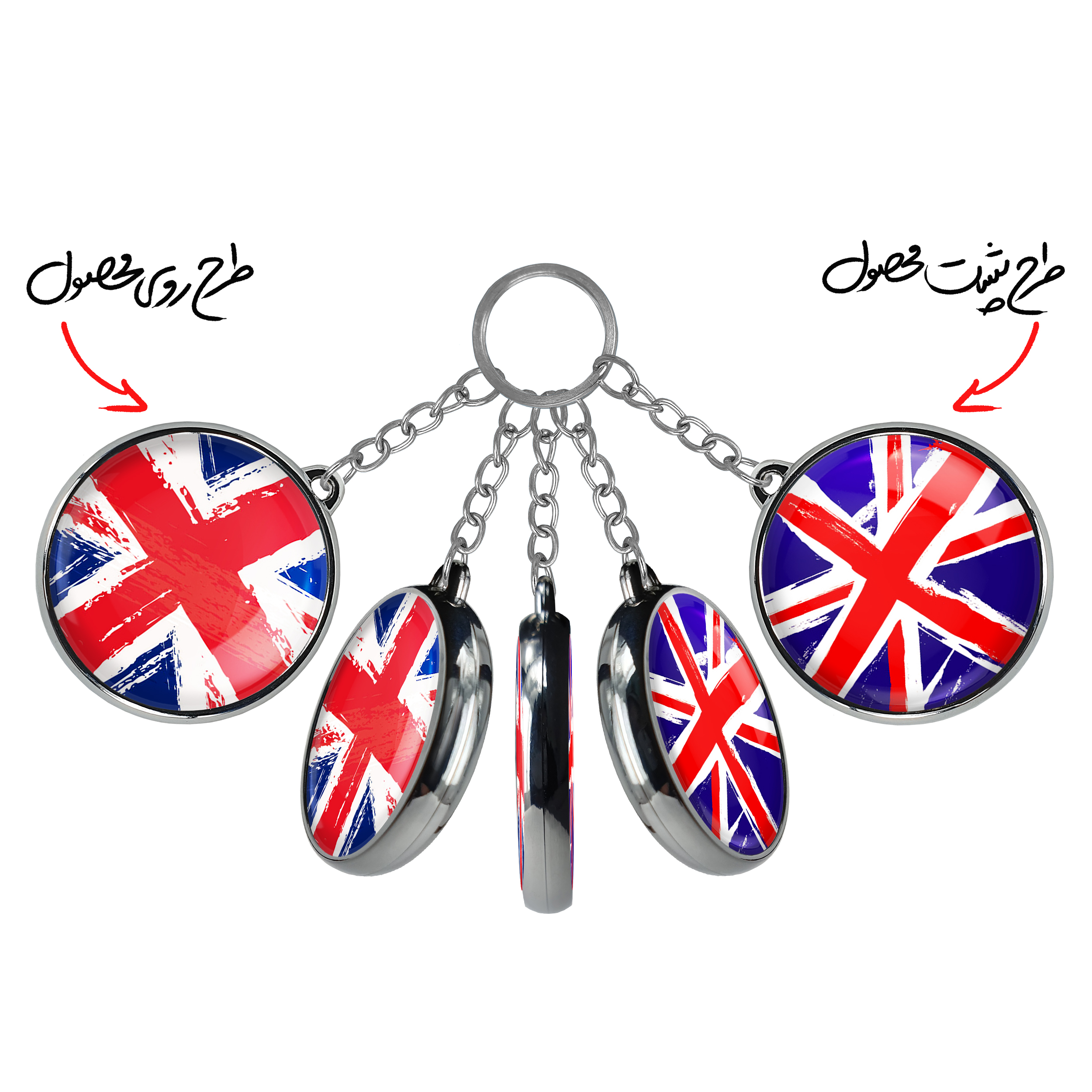 جاکلیدی دوطرفه پرچم انگلیس خندالو محصولی کاربردی و جدید است که در هر دو سمت محصول، تصویری متفاوت اما از یک موضوع چاپ شده و تفاوت اصلی آن با جاکلیدی های یک طرفه در همین است که هر دو سمت پشت و روی جاکلیدی، طرحی دیدنی و جذاب دارد.
