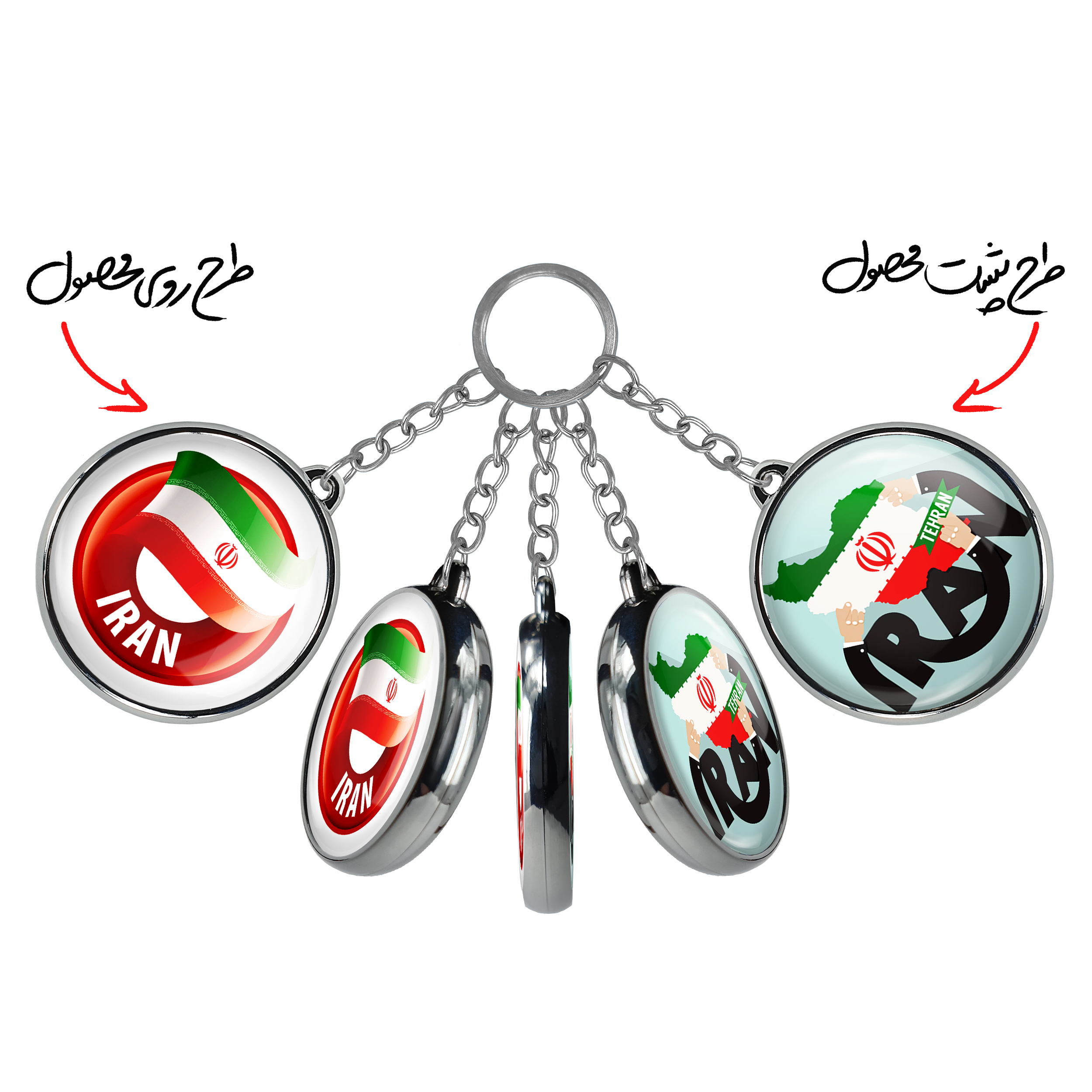 جاکلیدی دوطرفه پرچم ایران خندالو محصولی کاربردی و جدید است که در هر دو سمت محصول، تصویری متفاوت اما از یک موضوع چاپ شده و تفاوت اصلی آن با جاکلیدی های یک طرفه در همین است که هر دو سمت پشت و روی جاکلیدی، طرحی دیدنی و جذاب دارد. همچنین رینگ بکار برده شده برای دور طرح ها آبکاری کروم درجه یک و رنگ ثابت است و برخلاف سایر محصولات مشابه، از رنگ های متفرقه و یا سفید استفاده نشده، که این مهم، زیبایی محصول نهایی را چند برابر کرده است. جاکلیدی های دوطرفه پرچم ایران با استفاده از روکش سلفون براق ضدخش تولید شده که خاصیت ضدخش بودن آن عمر مفید استفاده از جاکلیدی ها را افزایش میدهد. چاپ جاکلیدی ها با دستگاه های استاندارد و با بهترین سطح کیفیت صورت گرفته و طرح با شفافیتی مثال زدنی و با سلفون چسبی تولید شده است که باعث شده محصول نهایی بدون شکست نور دیده شود. همچنین بسته بندی جذاب و مینیمال جاکلیدی دوطرفه پرچم ایران ، آنها را محصولی مناسب هدیه کرده است. زنجیر و حلقه بکار برده شده در جاکلیدی خندالو از نوع حلقه ضخیم و محکم بوده و حین استفاده آسیب نمی بیند.