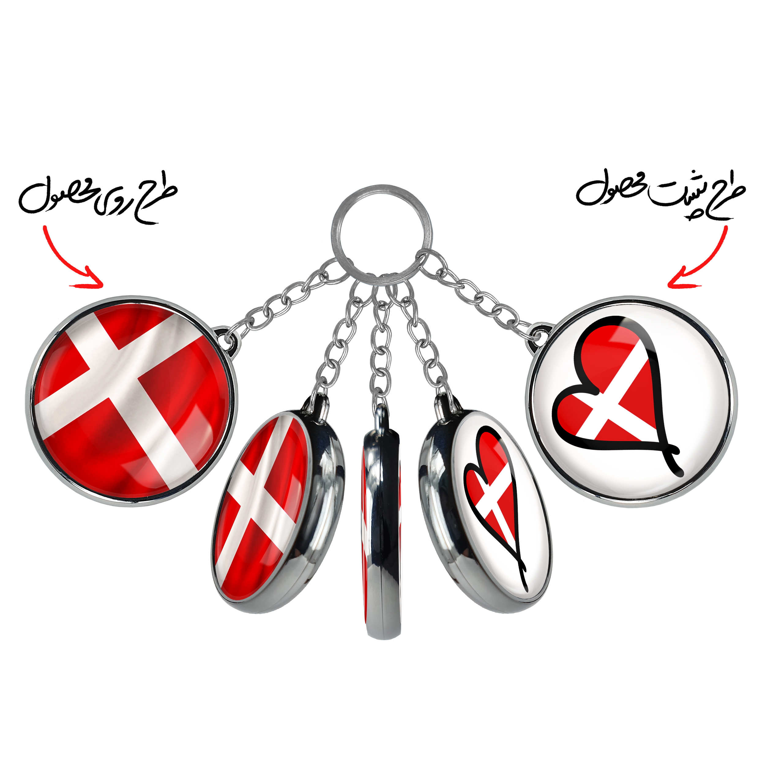 جاکلیدی دوطرفه پرچم دانمارک خندالو محصولی کاربردی و جدید است که در هر دو سمت محصول، تصویری متفاوت اما از یک موضوع چاپ شده و تفاوت اصلی آن با جاکلیدی های یک طرفه در همین است که هر دو سمت پشت و روی جاکلیدی، طرحی دیدنی و جذاب دارد.